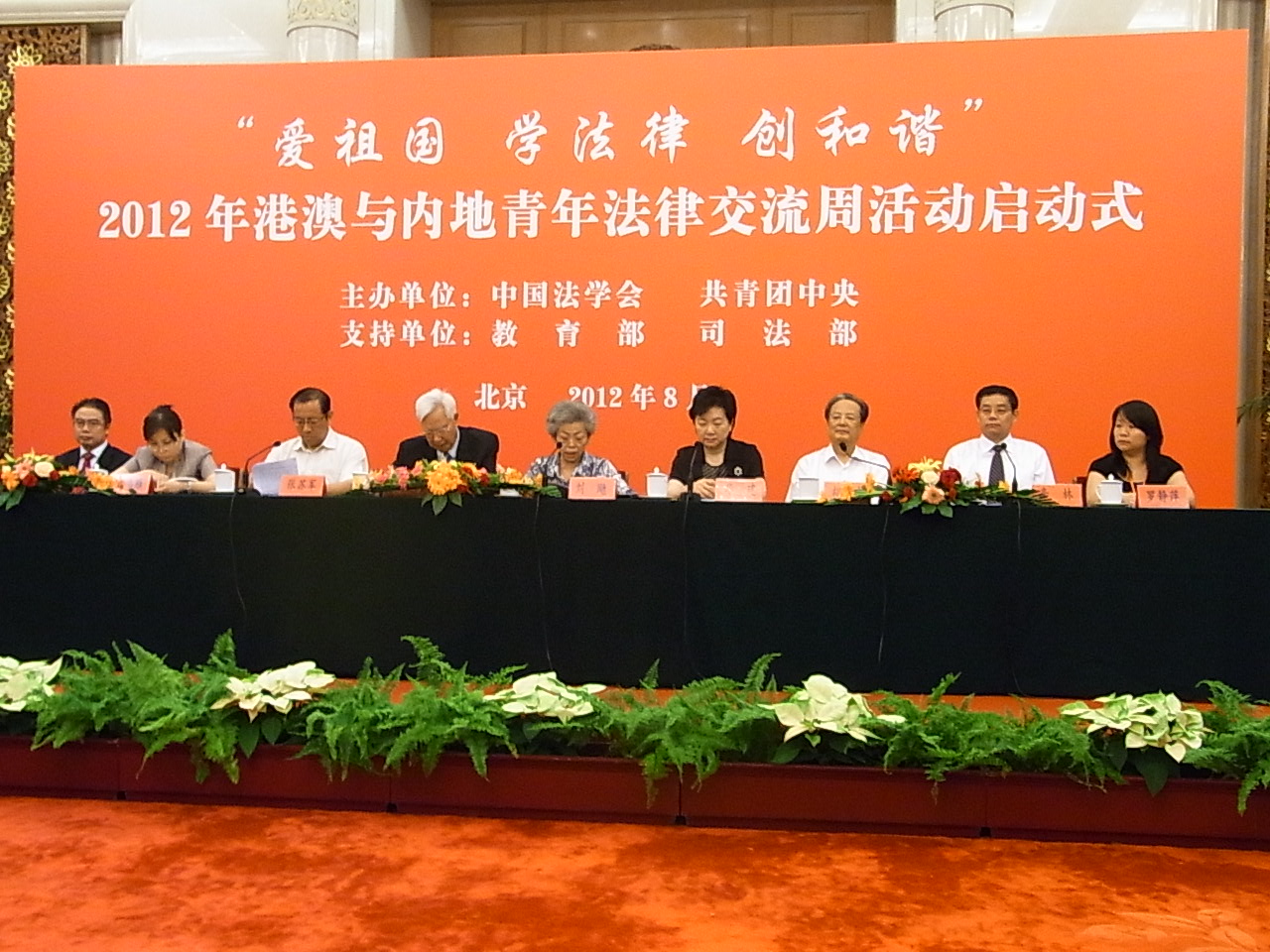 代表團參觀訪問了中國最高權力機關的全國人大,並在人民大會堂舉行了“2012年港澳與內地青年法律交流周活動啟動儀式”,以及得到了全國政協原副主席羅豪才、中國法學會副會長劉颺、司法部副部長張蘇軍、國務院港澳辦副主任華建的會見。之後,聽取中國社會科學院學部委員法學研究所所長李林講解中國的法律體系和法治文化,讓同學們加深了對中國法律的瞭解。