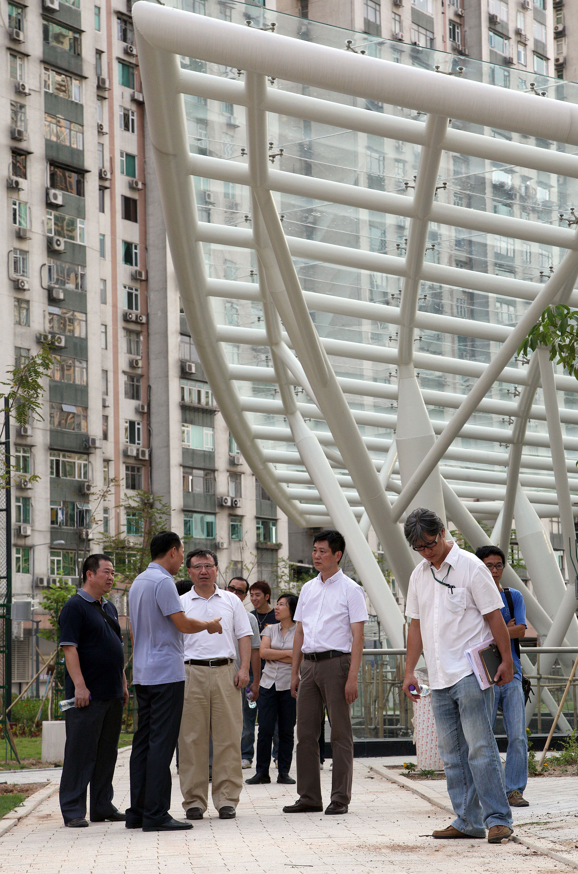 位於氹仔成都街及哥英布拉街之間、佔地28,000平方米的中央公園現已進入最後施工及測試階段。然而,公園部分設施的施工進度未如理想,施工質量也未符合驗收要求。此外,由於遭到強颱風“韋森特”的吹襲,公園內一些設施亦受到不同程度的損毀。為此,土地工務運輸局副局長劉振滄等日前(8月30日)到中央公園現場實地視察,並與承建商領導層會面,督促工程進度,責成承建商施工必須保質保量。
