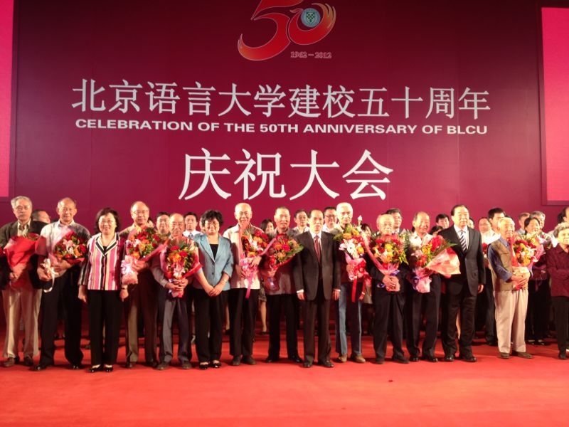 大會主持人首先宣讀了國家領導人的賀信、賀電和題詞。其後,北京語言大學崔希亮校長、教育部李衛紅副部長,北京市委常委、秘書長、教工委書記趙鳳桐、北京外國語大學校長韓震等在“建校50周年慶祝大會”中致辭。澳門特區行政法務司司長陳麗敏在慶典上致辭時表示,在五十年的發展歷程中,北京語言大學為我國及其他國家、地區培育了數以萬計的人才,不少更取得了驕人的成就。而北京語言大學更一直非常重視培養澳門公務員的工作,精心設計不同的課程,以提升澳門公務員的漢語水準,以及對我國文化和行政實況的認識,共開辦了近60班的培訓課程,超過750名的澳門公務員曾到過北京語言大學接受培訓。