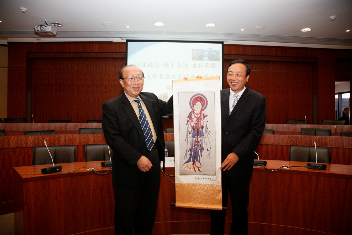 郝遠率領的訪問團於九月十一日到訪澳大,獲趙偉校長、工商管理學院院長蘇育洲、社會科學及人文學院院長郝雨凡、法學院教授駱偉建、教務長彭執中等接待。趙偉首先感謝訪問團的到訪,他表示,甘肅與澳大相隔雖遠,但關係密切,早前澳大師生參與由中華教育會組織的「華夏綠洲助學行動」,前往甘肅沙漠化較嚴重的甘肅民勤縣,送交捐款及探訪當地學校,幫助貧困的學生。他隨後向訪問團簡介了澳大近年的發展和定位,包括專業、通識、研習和社群四位一體的本科教育模式、住宿式書院以及重點基礎學科的發展等。