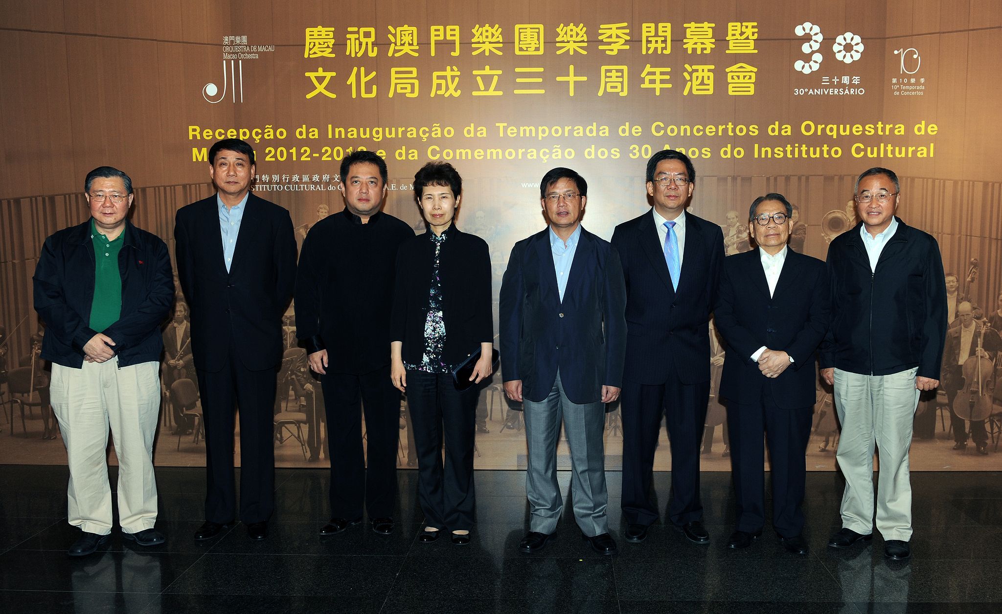 為慶祝澳門樂團新樂季開幕暨文化局成立三十周年,文化局九月十五日(星期六)晚上假文化中心舉行開幕禮,外交部駐澳門特別行政區特派員公署胡正躍特派員、中央人民政府駐澳門特別行政區聯絡辦公室副主任高燕、中聯辦文化教育部劉曉航部長、張曉光副部長、徐婷副部長以及文化局副局長梁曉鳴等出席。