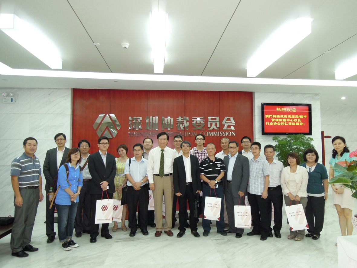 房屋局局長兼樓宇管理仲裁中心仲裁委員會主席譚光民率領仲裁委員會成員以及法律改革及國際法事務局之代表等一行20人,於本月10日到深圳進行為期一天之交流活動。期間與深圳仲裁委員會副主任石永青及深圳市民商事調解中心主任陳巧梅等會面,並舉行座談會。