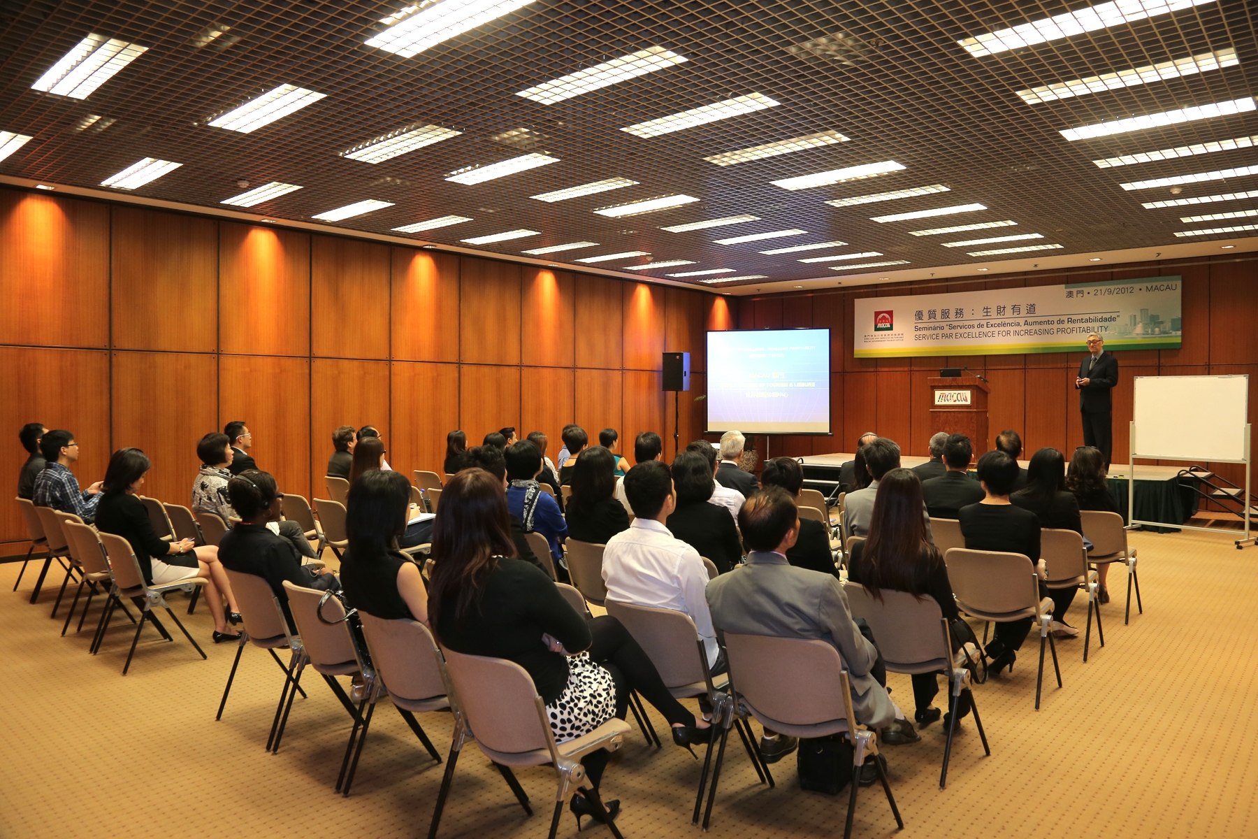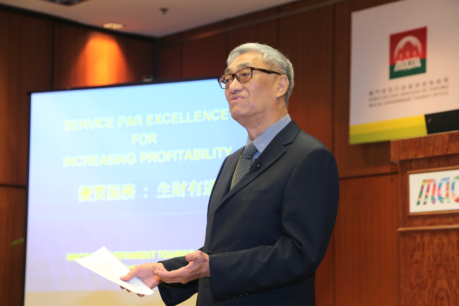 澳門零售業及相關行業的協會代表、澳門具規模的零售集團和企業領導以及中小企負責人參加了今天首個"優質服務 生財有道"座談會,由本澳資深旅遊業培訓導師周偉堂負責主講,提醒企業家有關優質服務帶來更大利潤的重要性。
