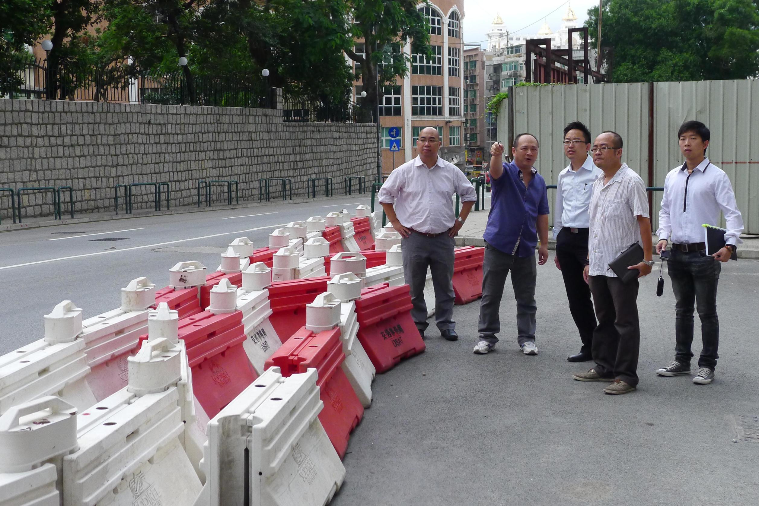 交通事務局交通規劃處處長蕭日鵬、氹仔坊眾聯誼會副理事長阮若華、街總離島辦事處副主任鄭煜、街總社會事務委員會主任何仲傳、路環居民聯誼會副理事長吳觀祥等一行早前往氹仔、路環多處地方視察,了解相關地區之交通情況。坊會代表指出,現時離島存在不少交通問題,如花園公園周邊道路、巴士站等經常出現車輛違例停泊情況,阻塞道路及巴士埋站,建議政府可考慮在氹仔增設違泊偵測系統,加強對駕駛者的警惕;坊會又反映,消防局前地經常有旅遊巴上落客,且情況越來越嚴重,希望政府關注及加強管理,並建議在附近位置尋找合適空間增設旅遊巴上落客區,方便旅遊進入舊城區及附近景點參觀。