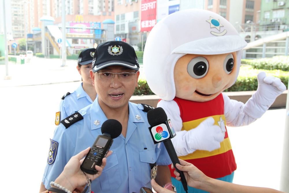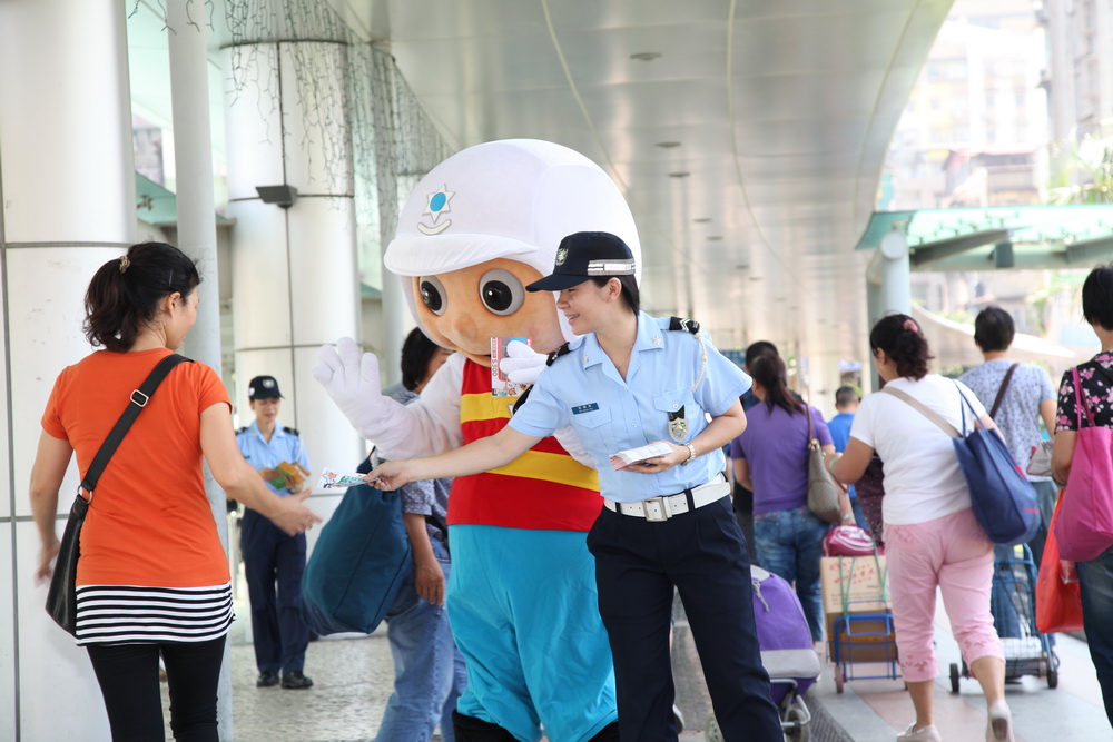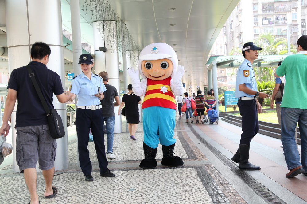 根據警方數據顯示,今年首8個月涉及行人違章過馬路而被檢控共有104宗,同比上升逾6%。內地旅客的交通事故,究其原因,主要是由於內地交通規範與本澳不同,最顯著的是澳門行車是左上右落而內地是右上左落,行人横過馬路時觀察車流的次序剛好相反,加上澳門地少車多,路況複雜,更加易生危險。警方希望市民旅客必須遵守交通燈號,並且使用過路設施如步行線、斑馬線、人行天橋、隧道等,謹守 “先望右、後望左” 的大原則,在確定路況安全下才横過馬路。事實上,安全、暢順的交通環境需要駕駛者和行人的合作,兩個主體缺一不可。以往本局較為著重在駕駛者的宣教,配合已經在全澳各地點開展的宣傳,日後則會加強對行人過路情況的監察和執法,希望逐步改變市民遊客的習慣,減低人車危險,提高交通效率。警員聯同 “交通宣傳大使”卡通人物在場派發全新印制的宣傳單張,向市民旅客提醒過馬路的安全要點,現場氣氛踴躍。