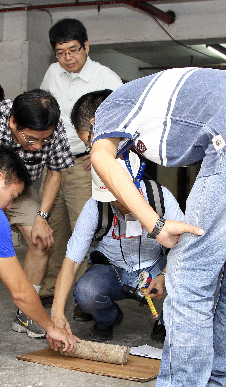 此外,局方日前邀請了香港大學土木工程系的專家教授來澳參與善豐花園的技術檢測工作,以便強化檢測質素,專家隊伍日前與局方開會及初步分析了善豐花園的技術資料,並實地了解現場狀況及與局方技術團隊共同制訂了工作方向,今天在局方人員陪同下,在現場進行初步檢查及指導專業檢測團隊工作,並抽取了大廈混凝土樣本,帶回香港作進一步檢驗,日內將有初步分析。