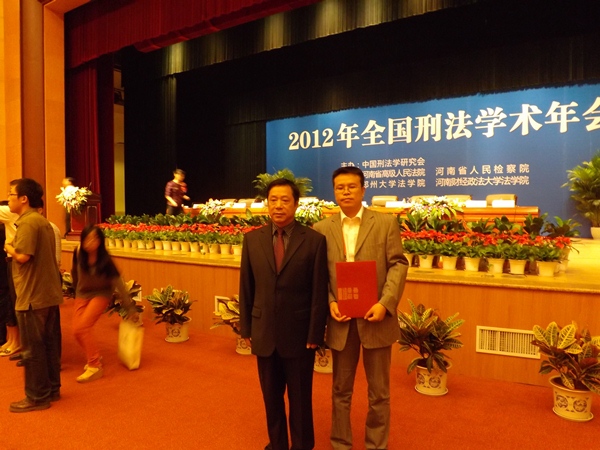中國刑法學研究會在鄭州舉行“首屆全國刑法學優秀博士學位論文獎”頒獎儀式,以表彰獲獎者及其指導教師。澳門大學首位法學博士焦豔鵬的博士學位論文《刑法生態法益基礎理論研究》獲該項殊榮,其博士生導師、澳大法學院趙國強教授與之共同出席並接受表彰獎勵。
