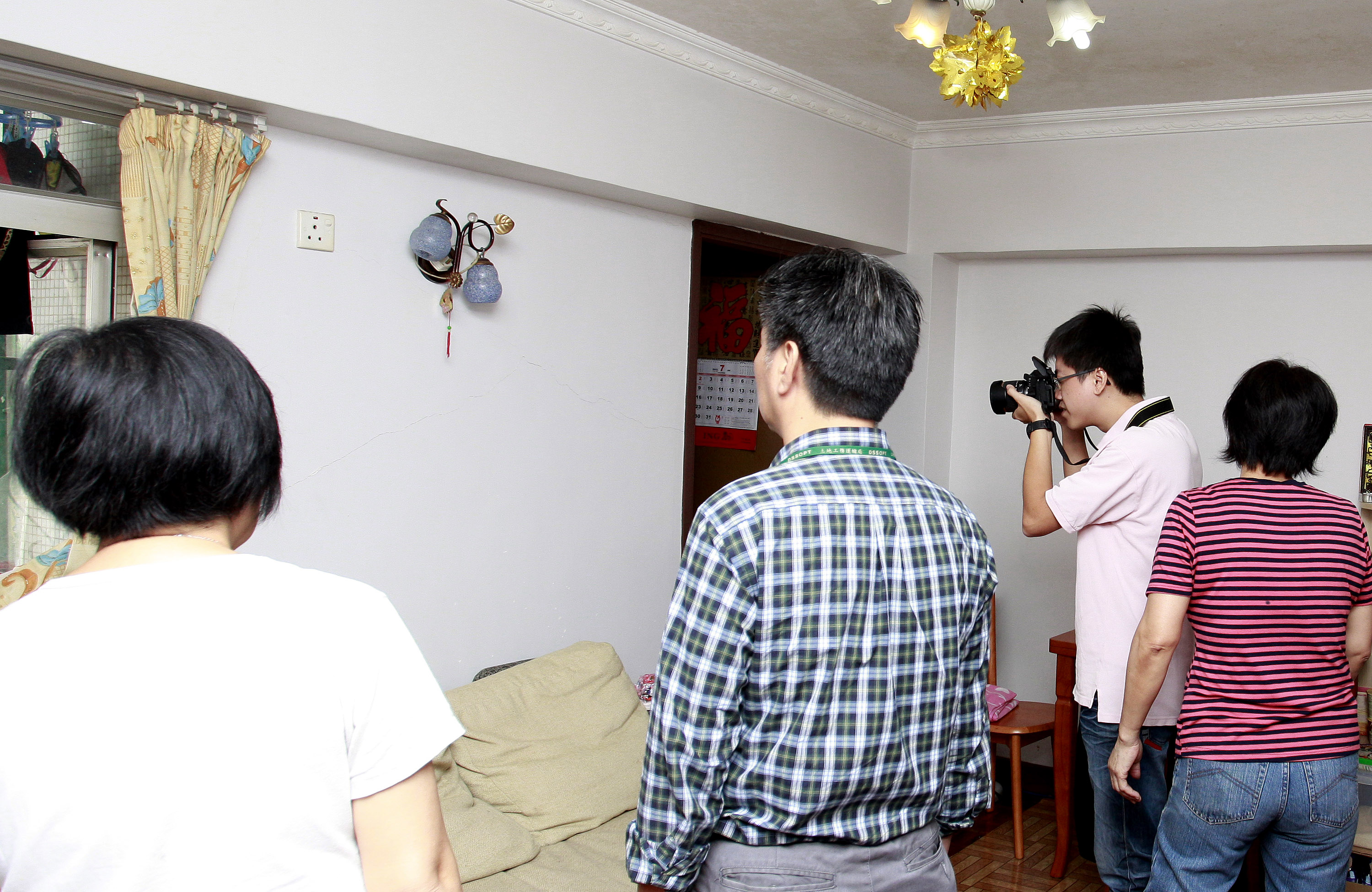 應住戶的需要,土地工務運輸局和警方續安排已預約的住戶上樓取回物品。善豐花園一共有140多個單位,驗樓委員工程師今天再隨同住戶進入單位內驗樓,至今已檢驗了80多個單位,即約6成的單位已被檢驗;其餘的檢測人員亦加緊在大廈公共部分繼續各項檢測工作,包括利用安裝於善豐花園及周邊三棟樓宇的監測儀器持續收集數據。此外,由今天開始,驗樓委員會也開始檢驗除善豐花園以外的其他有關樓宇。