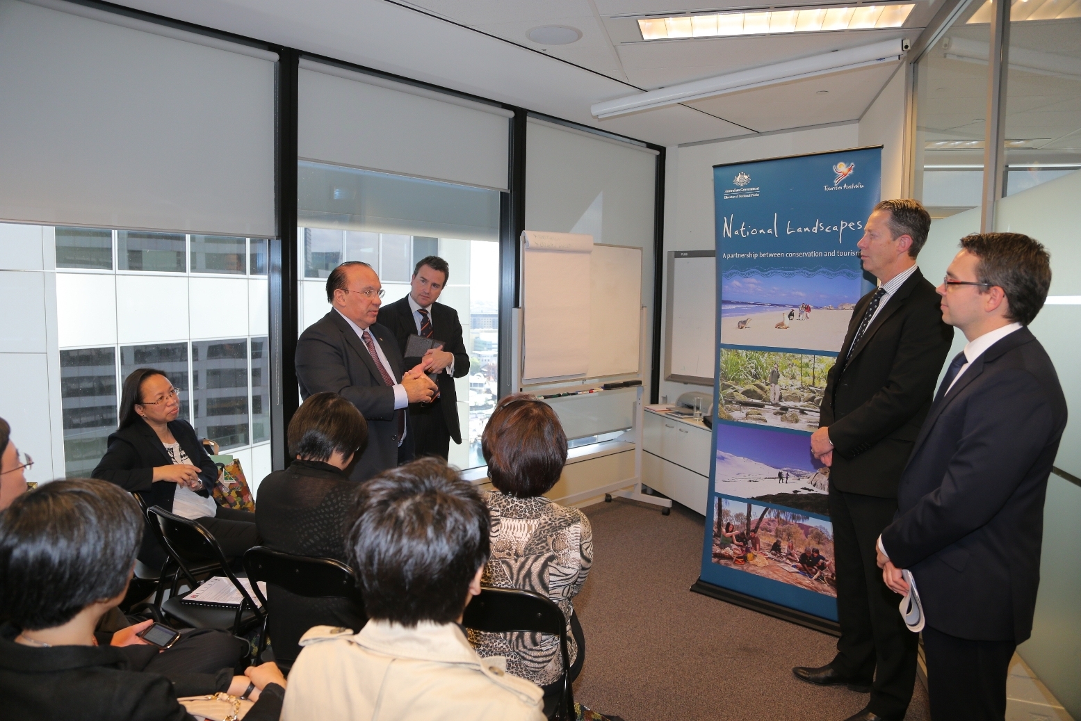 安棟樑於16日會見當地傳媒,介紹行程內容及目的。隨後,代表團一行先後與新南威爾斯旅遊及盛事部長喬治蘇里斯(George Souris)、目的地NSW工業合作關係及政府政策局代局長西蒙娜雪珀(Simonne Shepherd)、新南威爾斯旅遊業議會主席肯恩科比特(Ken Corbett)、悉尼市政廳水利管理部經理巴克提德維(Bhakti Devi)及澳洲旅遊局行政總裁麥勤偉(Andrew McEvoy)等會晤,彼此交流兩地旅遊業的最新發展。