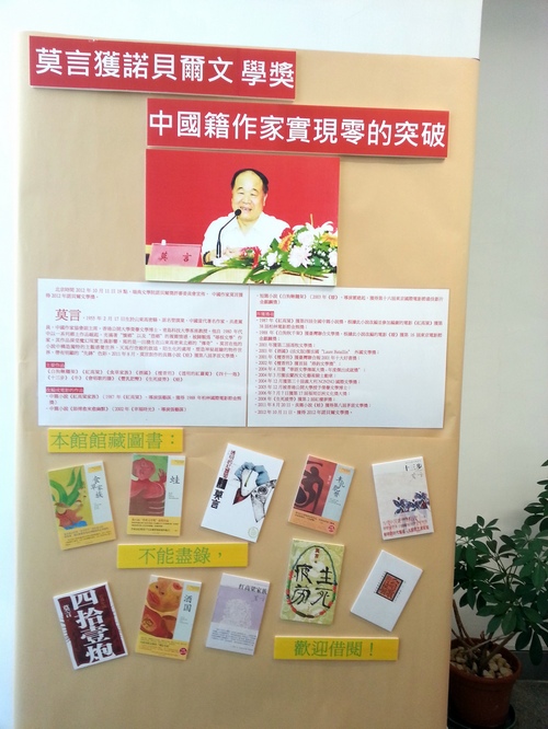 自作家莫言榮獲本屆諾貝爾文學獎後,文化局澳門中央圖書館轄下各館所藏的莫言著作借閱量激增,對促進閱讀起了良好效應。