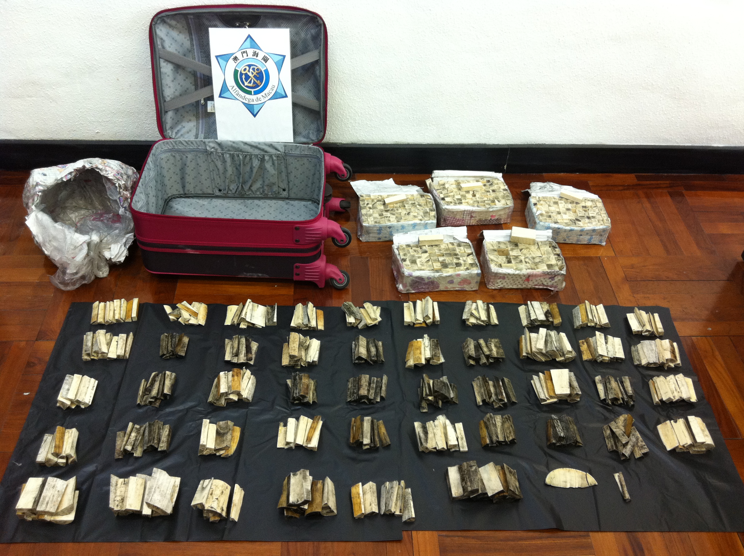 關員檢查上述行李過程,主要是經x光機檢查時,有關行李內有可疑,要求該旅客打開行李箱檢查,關員查詢有關物品時,旅客聲稱為『黑檀木』,關員在檢查期間發現旅客聲稱的『黑檀木』有退色現象,因此覺得可疑,使用清水沖刷後呈現牙骨的顏色,旅客承認上述聲稱的『黑檀木』小塊實為『象牙』,隨後聯絡民政總署專業人員作出初步檢定為『象牙』,有關物品是從台灣經香港進入本澳再運往內地。