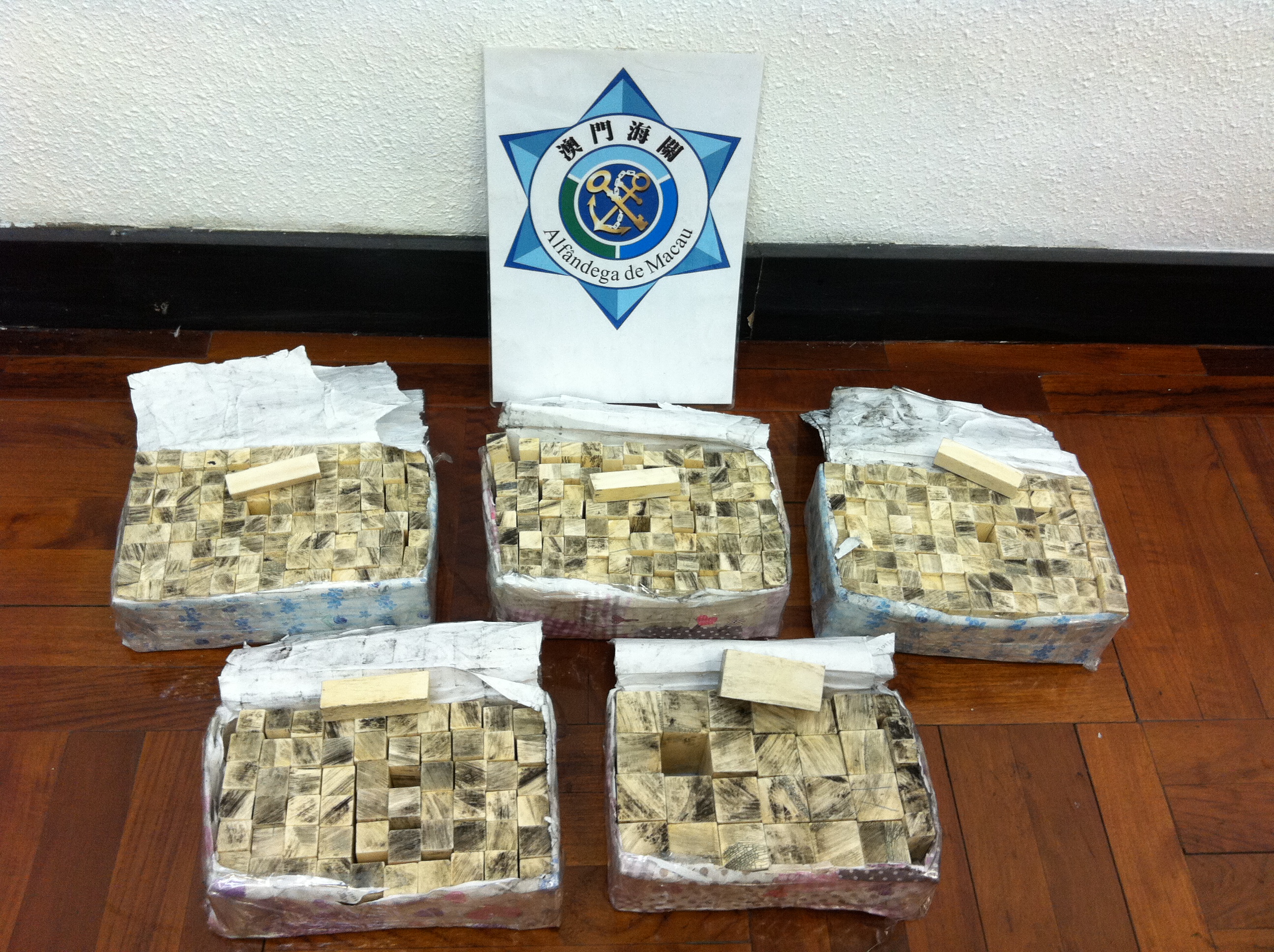 2012年10月25日,氹仔臨時客運碼頭於11H10,查獲一名台灣男性旅客,年齡49歲,台灣藉,其乘坐香港(港澳碼頭)金光飛航渡輪入境本澳,關員從其行李箱內發現6小包,懷疑『象牙』小塊,共864件,總重22.5公斤,估計價值約為:澳門幣十七萬元。