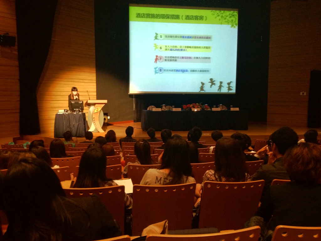 在分享會中,環境保護局代表首先簡介了“澳門環保酒店獎”的背景和意義,隨後由獲得獎項的環保酒店代表分享其酒店在參與“澳門環保酒店獎”以來的成果和經驗,讓與會學生能體會到“澳門環保酒店獎” 除推動酒店業界實施環境管理外,還因酒店實施節能、節水和減廢等環保舉措而減省了龐大的營運成本,同時,持續向酒店員工、客人以及供應商宣傳環保理念,履行了對社會和環境應有的責任。