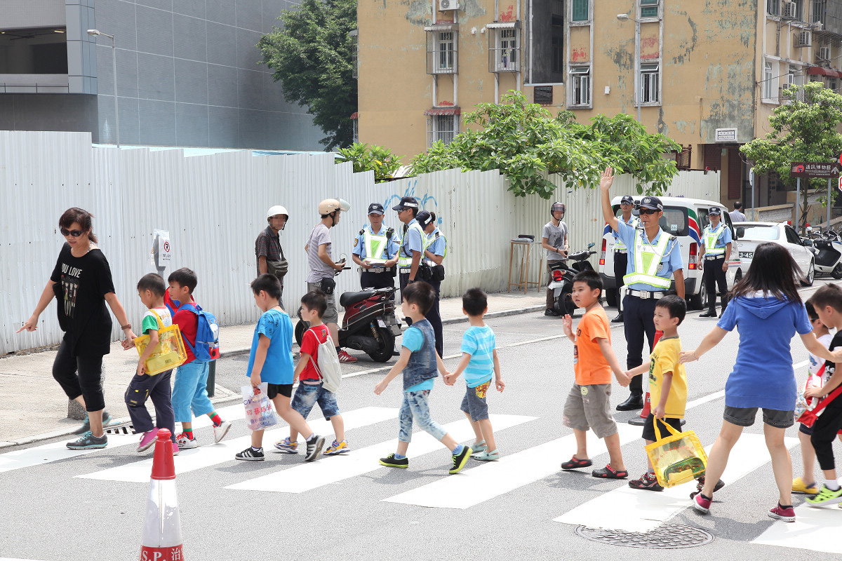 為了讓青少年自小養成良好的交通習慣,本局在今年總共向十多間學校近四千名學生進行了交通安全講座,亦向社會團體近六百名長者給予關懷指導。對老幼群體的宣教著重行人責任,如過馬路時必須看清路況、燈號、來車,遵守秩序,勿貪一時之快;過路時亦須顧己及人,強調使用過路設施。另外,今年初至五月份,本局一如既往派員協助交通事務局品牌活動《有禮加油站》的推行,冀以遊戲形式在幼小心靈栽下講禮貌、守秩序、保安全等良好公民意識。