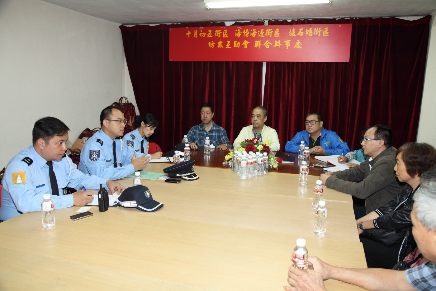 就三坊會代表提出的意見及個案,本局代表細心聆聽並即場作出回應或記錄跟進;會上亦向坊會派發 “大廈防罪”、 “店鋪防盜”、“提防小手”等宣傳品;雙方更合意聯辦宣傳活動,共促區內治安環境,讓市民安居樂業。治安警察局開展社區警務多年,有賴市民大力支持,我們會繼續防打並舉,以行動回饋社區。