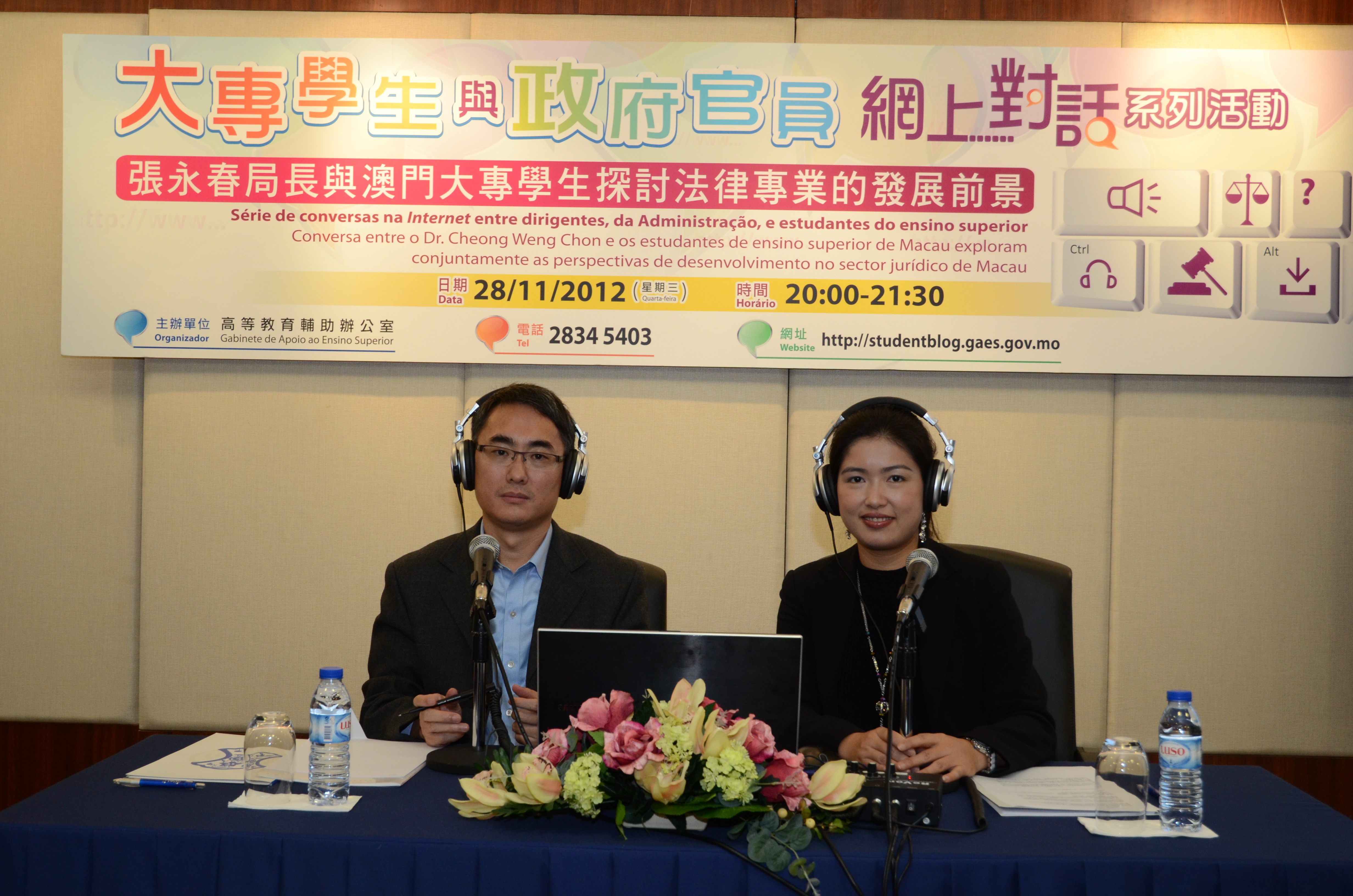 歡迎有興趣的人士,登入澳門大專學生部落(http://StudentBlog.gaes.gov.mo)收聽或下載相關對話內容,同時,亦可重溫過往兩場精彩的網上對話內容。
