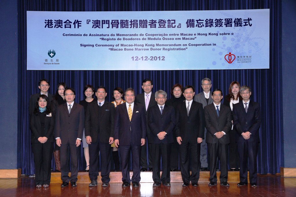 衛生局與香港特別行政區醫院管理局(醫管局)於2012年12月12日在澳門簽署「澳門骨髓捐贈者登記」 備忘錄。澳門居民將可在本地捐血中心登記,再由「香港骨髓捐贈者資料庫」處理及儲存登記者資料,配對病人和捐髓者。