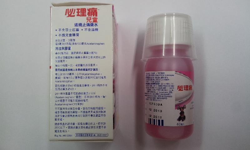 根據藥物擁有人GlaxoSmithKline的通報,由於發現兒童用退燒止痛口服藥物“必理痛兒童退燒止痛藥水(PANADOL SUSPENSION 120MG/5ML)”瓶上標籤所載的有效成份含量單位中文資料錯誤,該公司自願回收上述藥物。