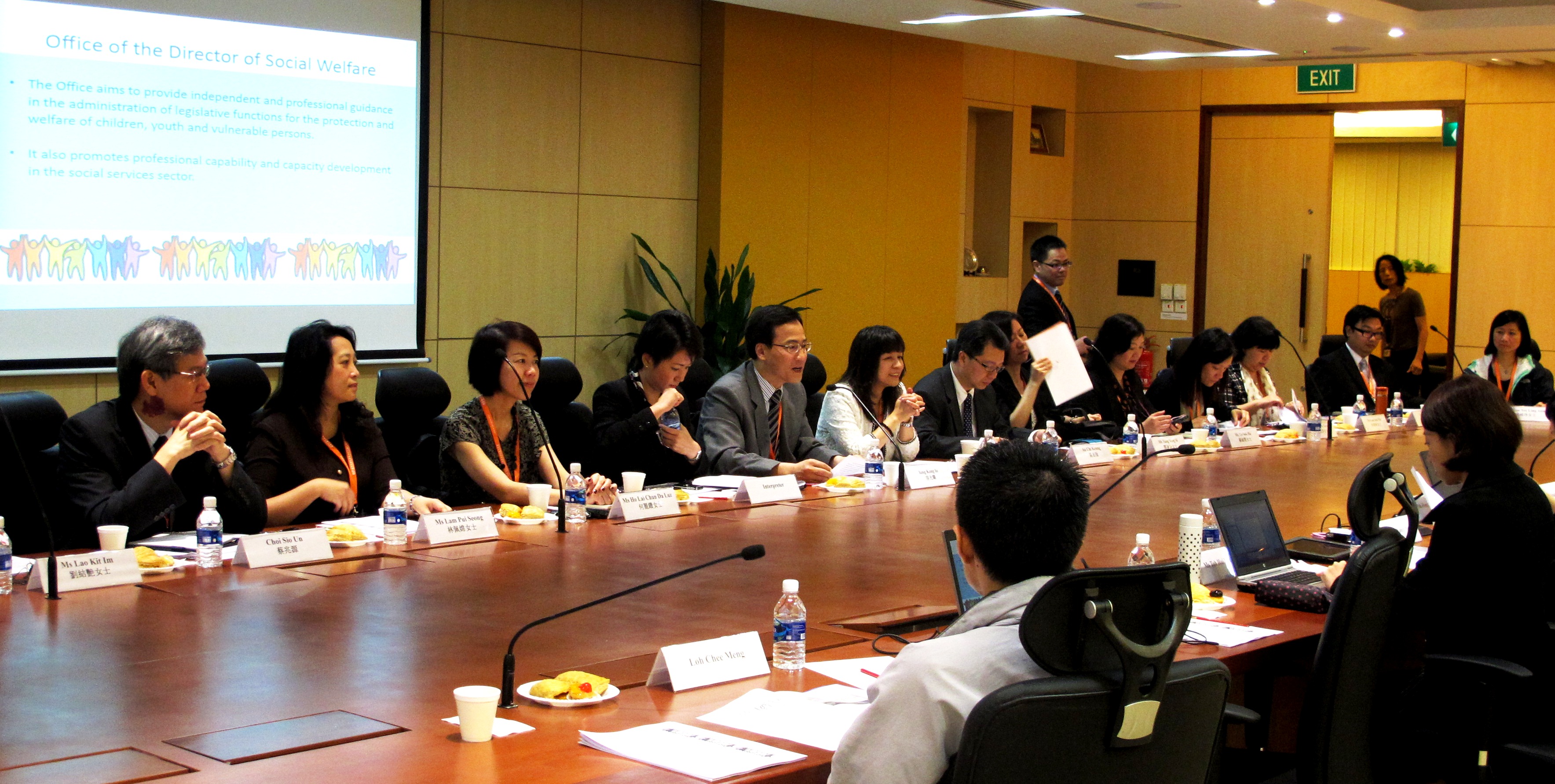 代表團獲新加坡社會及家庭發展部和國家社會服務聯會熱情接待並舉行了座談會,會上介紹了新加坡的社會服務情況,重點講述家庭、青少年、長者及康復服務發展。隨後到多個由社會及家庭發展部所管轄的社服機構進行座談及考察,彼此分享上述範疇兩地的工作情況及觀摩康復機器系統等先進設備,了解如何幫助殘疾人士得到更佳的恢復訓練等。此外,代表團亦到太和觀民間慈善機構進行了交流座談,並參觀其轄下之家庭服務中心及其他服務設施,探討了新加坡政府與民間社會福利機構的合作模式。