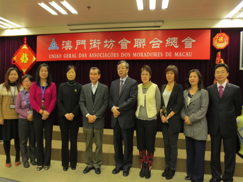 之後代表團又到訪澳門街坊會聯合總會,由姚鴻明會長、吳小麗理事長、鄭敏敏秘書長、社會服務辦公室孔惠榕總幹事、社會服務辦公室林敏芝協調主任等人接見,並就本澳安老福利服務進行交流和討論。會後,代表團參觀機構屬下之頤駿中心(日間護理中心),了解有關服務的運作情況。