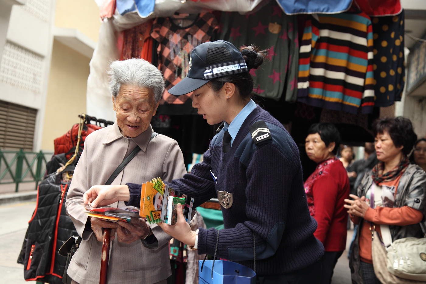 春節過後,治安警察局再度開展新一輪的社區警務宣傳,以維繫良好的警民係。今天上午,行動廳公關處警司黃超文聯同澳門警務廳第一警務警司處以及下環區坊眾互助會理事長張麗珍、副理事長羅錫坤等,聯袂到下環一帶進行社區宣傳活動。
