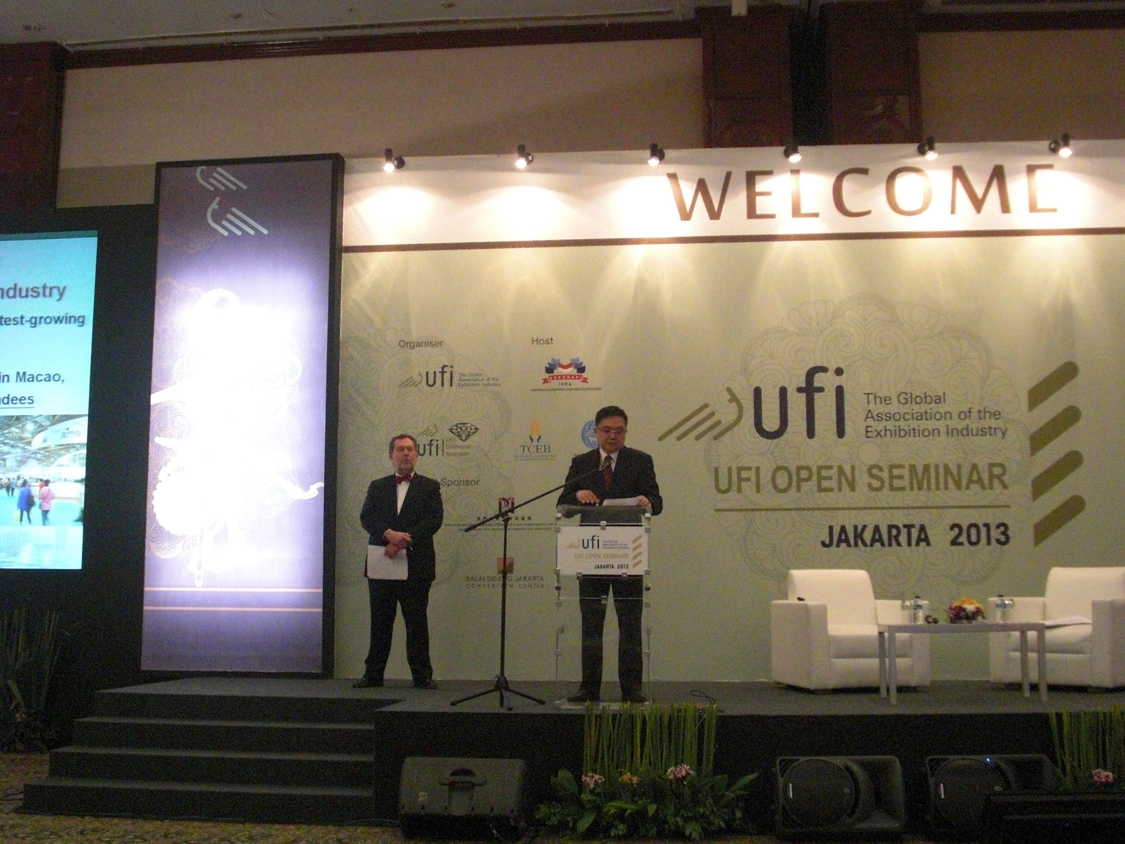 為加強澳門與海內外展覽業界之交流與合作,宣傳相關澳門會展業優勢,以吸引更多海內外知名展覽組織者在澳舉辦展覽活動,澳門特別行政區政府會展業發展委員會發展對外合作小組及澳門貿易投資促進局一行八人,於2月28日至3月1日前往印尼雅加達,參加由國際展覽業協會(UFI)及印尼展覽公司協會(IECA)共同舉辦之「2013 UFI 亞太研討會 - UFI OPEN SEMINAR IN ASIA」。