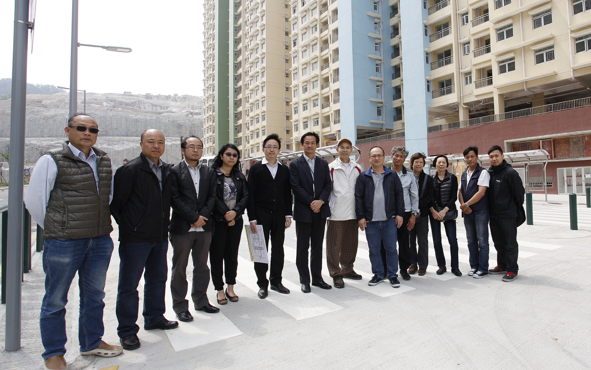 土地工務運輸局基礎建設廳廳長郭子昌、交通事務局運輸管理處處長盧毅華、交通規劃處處長蕭日鵬聯同街總離島辦事處主任阮若華、副主任鄭煜、黑沙村村民互助會會長吳觀祥、路環坊眾互助會副會長蘇七根、工聯離島辦事處副主任梁銘恩及相關團體代表,日前一同視察石排灣公屋項目的路網和交通配套設施的準備情況。