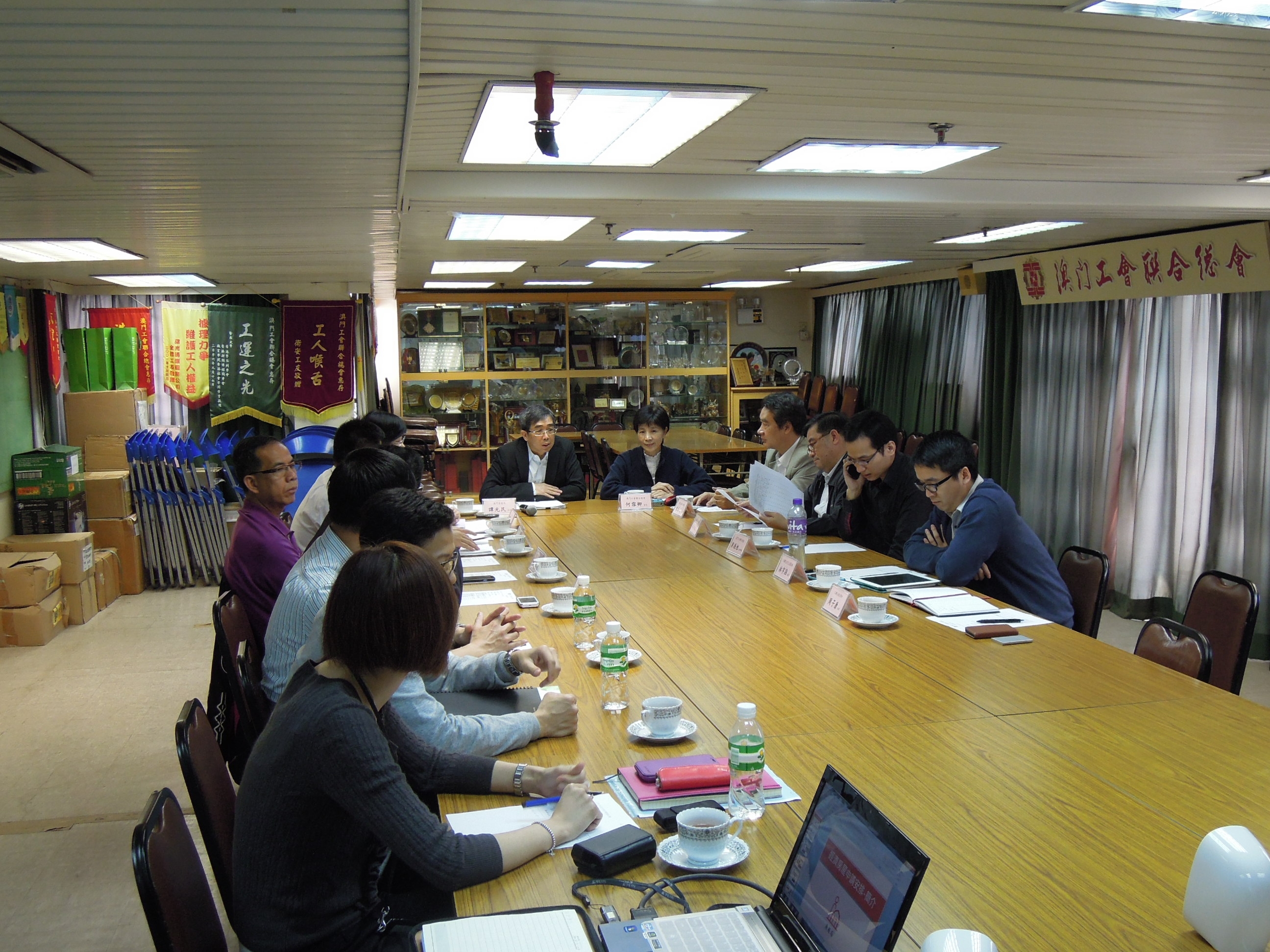 房屋局局長譚光民、副局長郭惠嫻等於3月20日拜訪澳門工會聯合總會,獲該會會長何雪卿、副會長陳錦鳴等多位副理事長接待。會上,房屋局代表為即將於3月27日展開業興大廈1,544個一房一廳經屋單位之公開申請進行介紹。