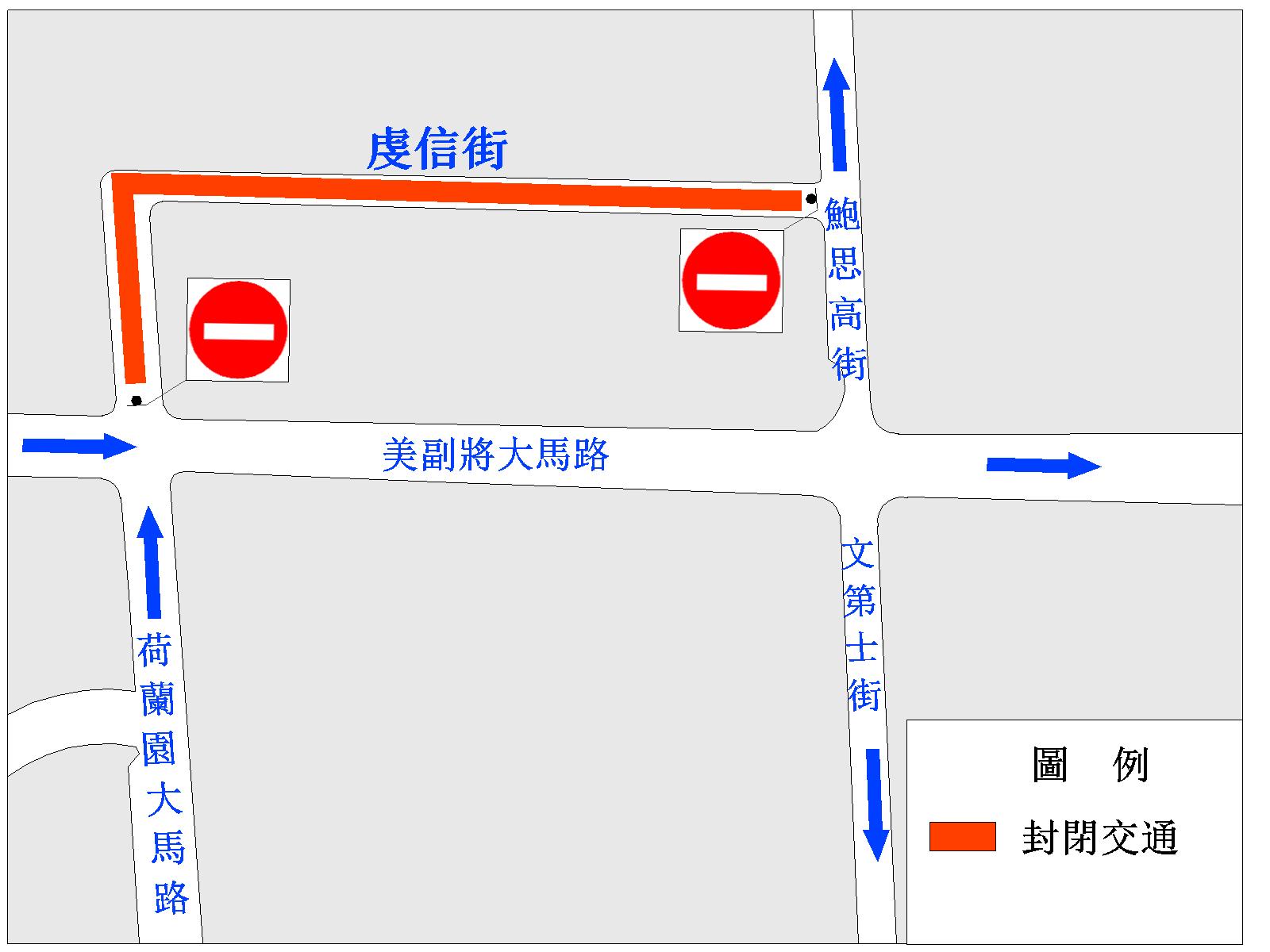 與此同時,介乎高勵雅馬路與偉龍馬路之間的一段氹仔雞頸馬路(即由高勵雅馬路駛往孝思墳場再駛往偉龍馬路的方向)、路環打纜街及打纜前地(即由打纜前地往恩尼斯總統前地方向)、介乎船鋪前地與譚公廟前地之間的一段路環十月初五馬路(即由船鋪前地往譚公廟前地方向),以及介乎譚公廟前地與鄉村馬路886號之間的一段鄉村馬路(即由譚公廟前地往鄉村馬路886號方向)於4月4日上午8時至晚上7時,臨時改作單向行車。