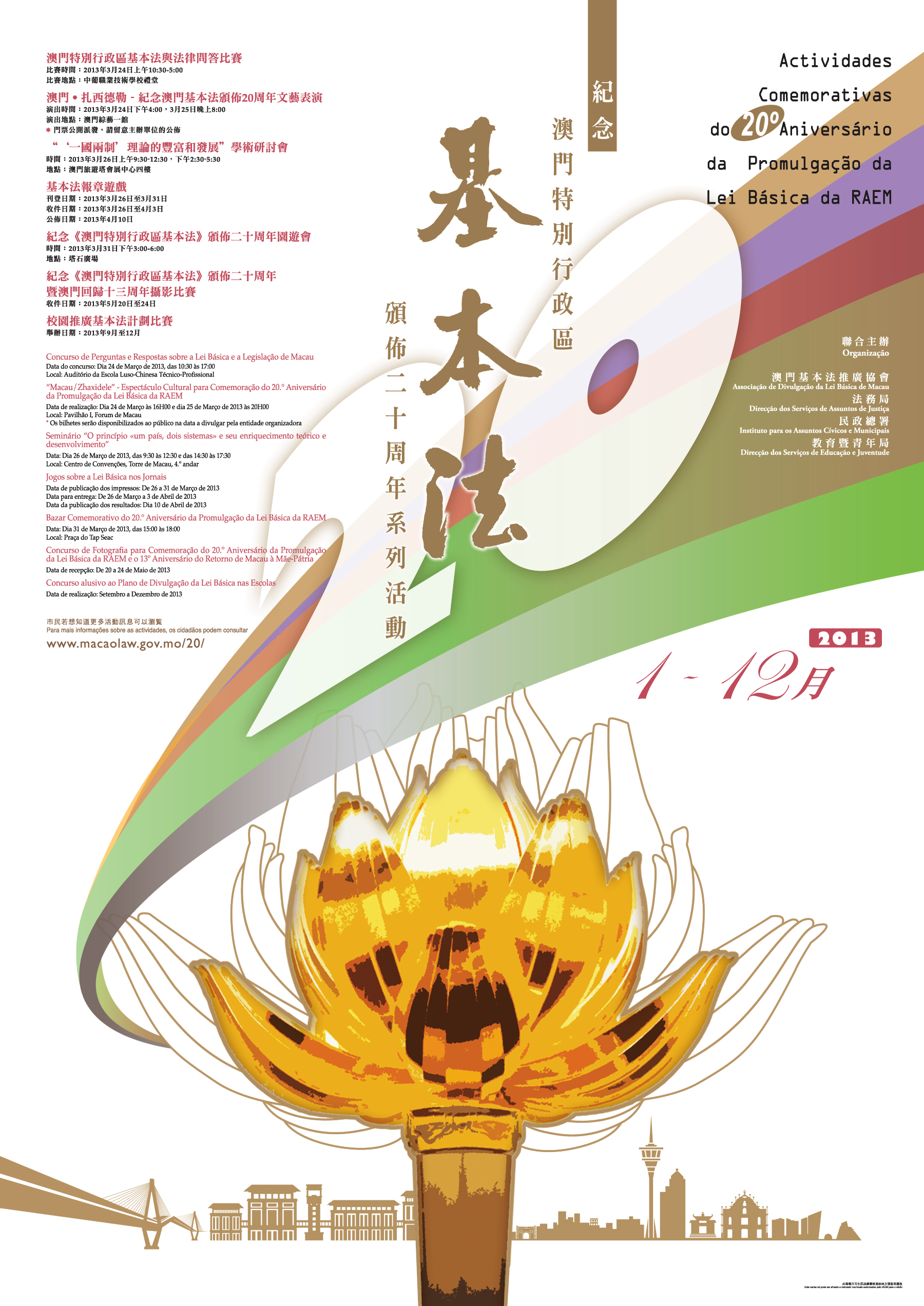 為紀念《澳門特別行政區基本法》頒佈二十周年,澳門基本法推廣協會、法務局、民政總署及教育暨青年局合辦一系列活動,而其中的園遊會將於三月三十一日下午三時至六時假塔石廣場舉行,歡迎全澳市民參加。