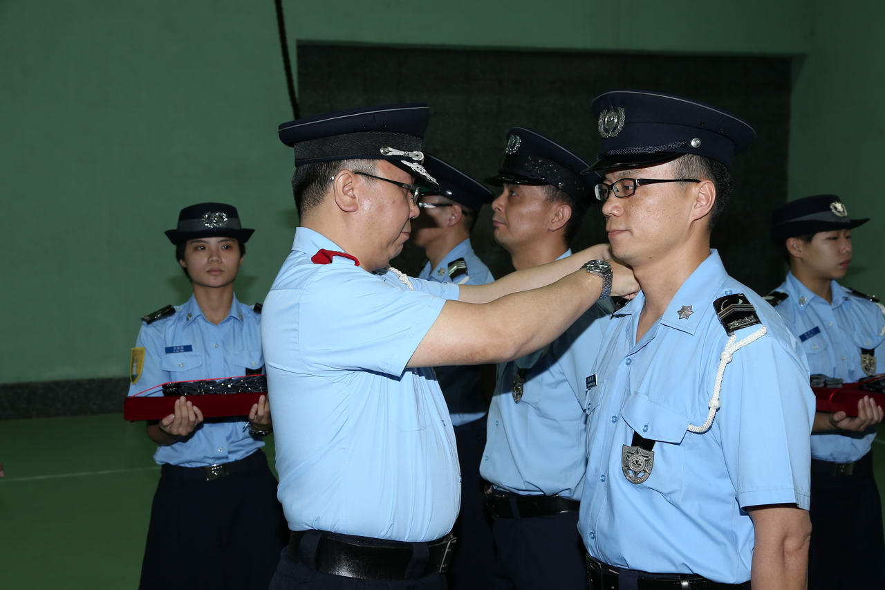 今天(二十九日)中午12時,在特警總部室內運動場舉行了晉升首席警員晉升儀式。儀式由治安警察局局長李小平警務總監、副局長黎錦權及梅山明副警務總監主持。出席儀式的還有局內各部門的廳長及負責人,為同僚作出祝賀。