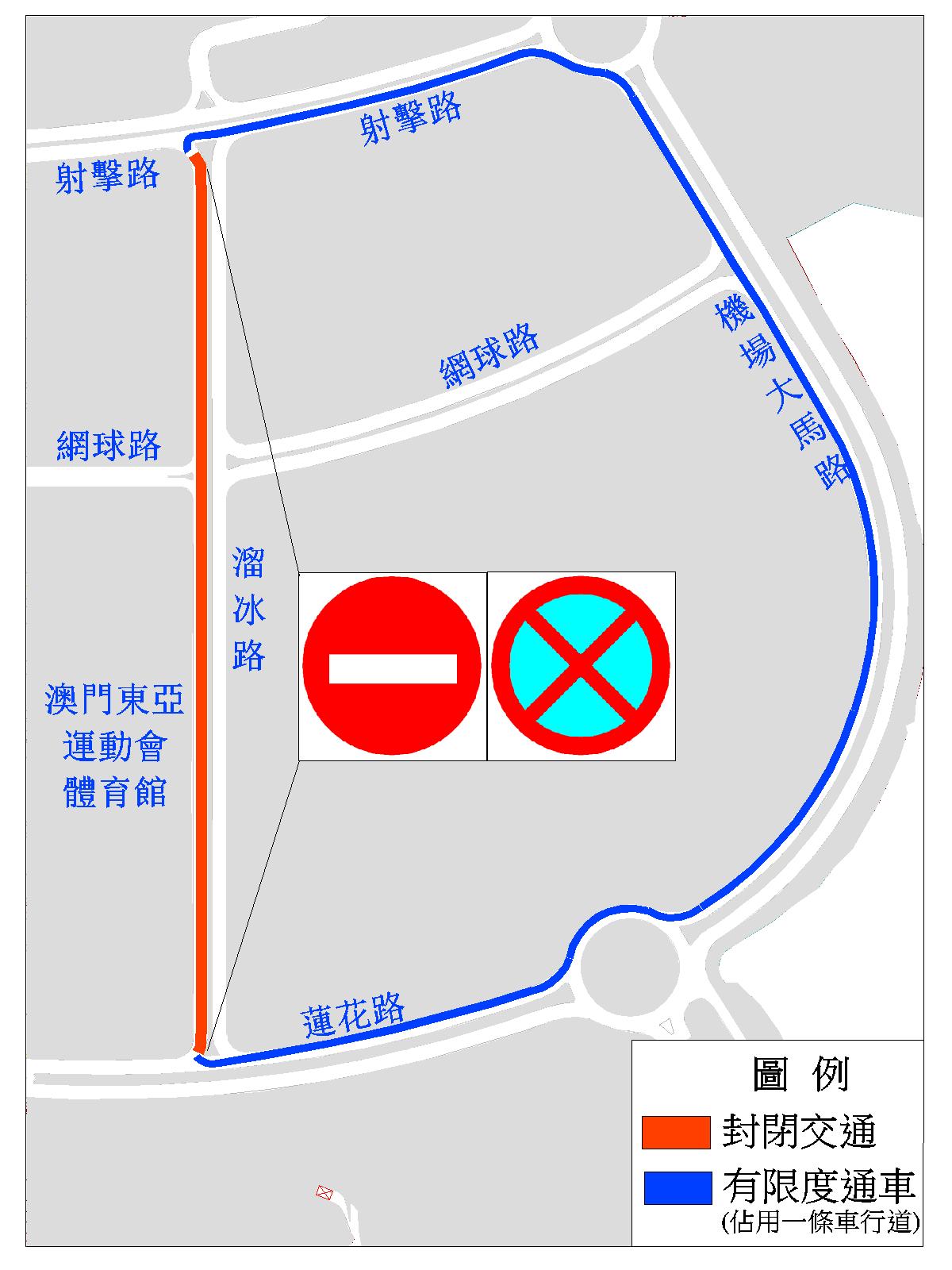 體育發展局周日(5日)在路氹城舉辦鐵人賽,配合活動需要,介乎射擊路與蓮花路之間的一段溜冰路(靠向澳門東亞運動會體育館的一側車行道),即由射擊路往蓮花路方向,當日上午7時30分至10時30分實施臨時封閉交通,禁止車輛駛入及停泊;而蓮花路、路環電廠圓形地、機場大馬路、航空圓形地及射擊路實施有限度通車。期間,設於溜冰路的臨時重型車停泊區則遷往金鳯路(近聯生圓形地),交通事務局呼籲駕駛者及相關業界留意。