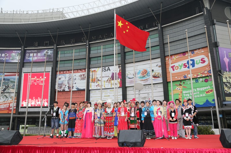 升旗儀式在早上七時四十五分正式開始,由濠江中學管樂團演奏樂曲,透過司儀的介紹及短片播放,讓參與者更了解“五四青年節”的背景及精神。儀式後由梁勵局長頒發“中學生五四知識填字遊戲”書券予一百五十名獲奬學生。是項填字遊戲共有二十四所學校參加,參與的學生達三千七百多人。隨後有澳門演藝學院舞蹈學校表演民族舞蹈,以及由參加了 “2013五四青年民族文化週”的各地民族代表表演唱歌。