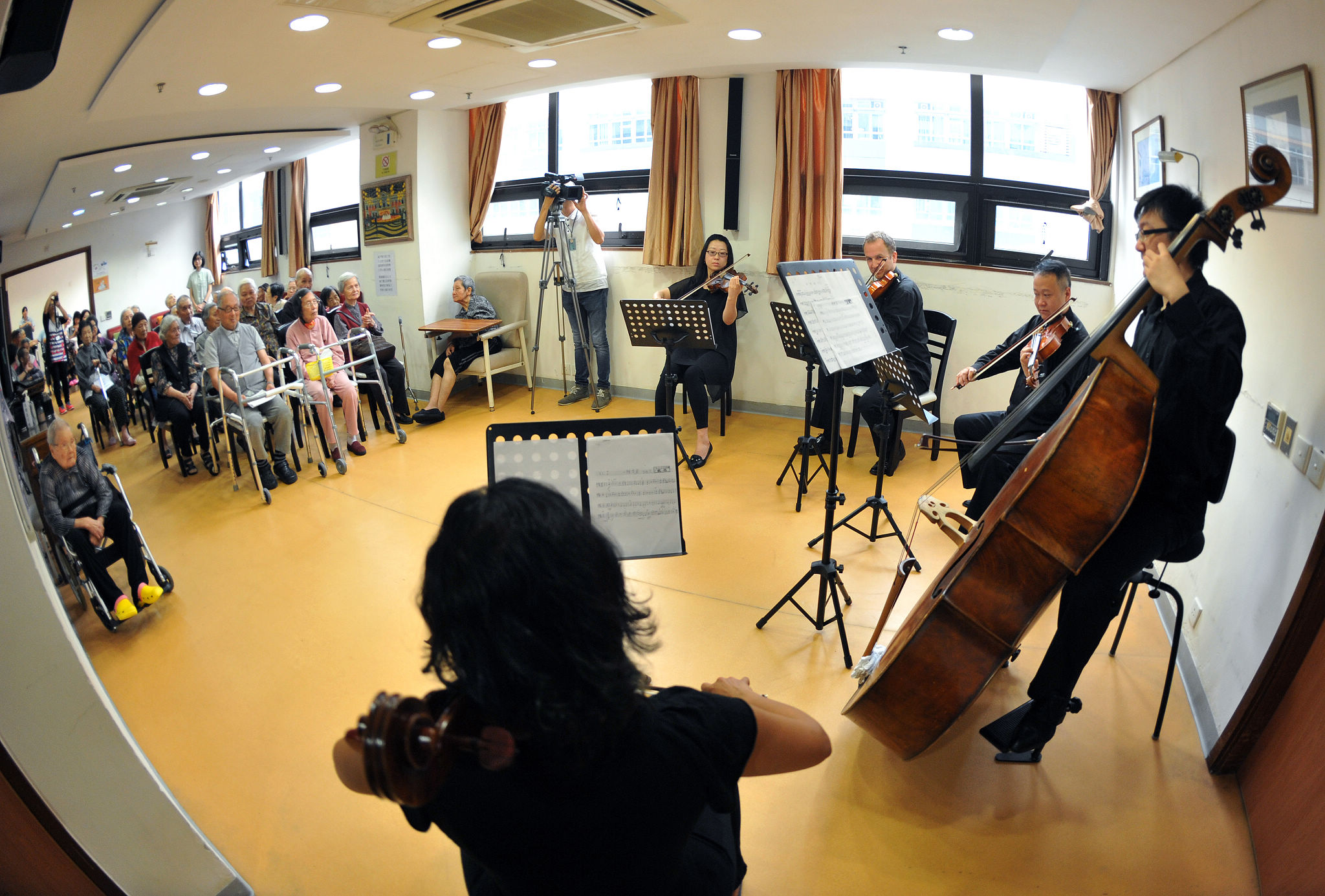 為關懷長者餘暇生活,進行音樂推廣,澳門樂團分別探訪了母親會屬下的母親會護理安老院及母親會安老院 ,舉行了兩場關愛系列音樂會,以弦樂五重奏形式演奏了多首經典西方樂曲及膾炙人口的音樂,向他們問好致意。一眾“老友記”聚精會神聆聽樂團樂師們的精心表演,聽到熟悉的旋律如《步步高》、《地久天長》、《梁祝.化蝶》等不禁手舞足蹈,跟隨節拍和應。