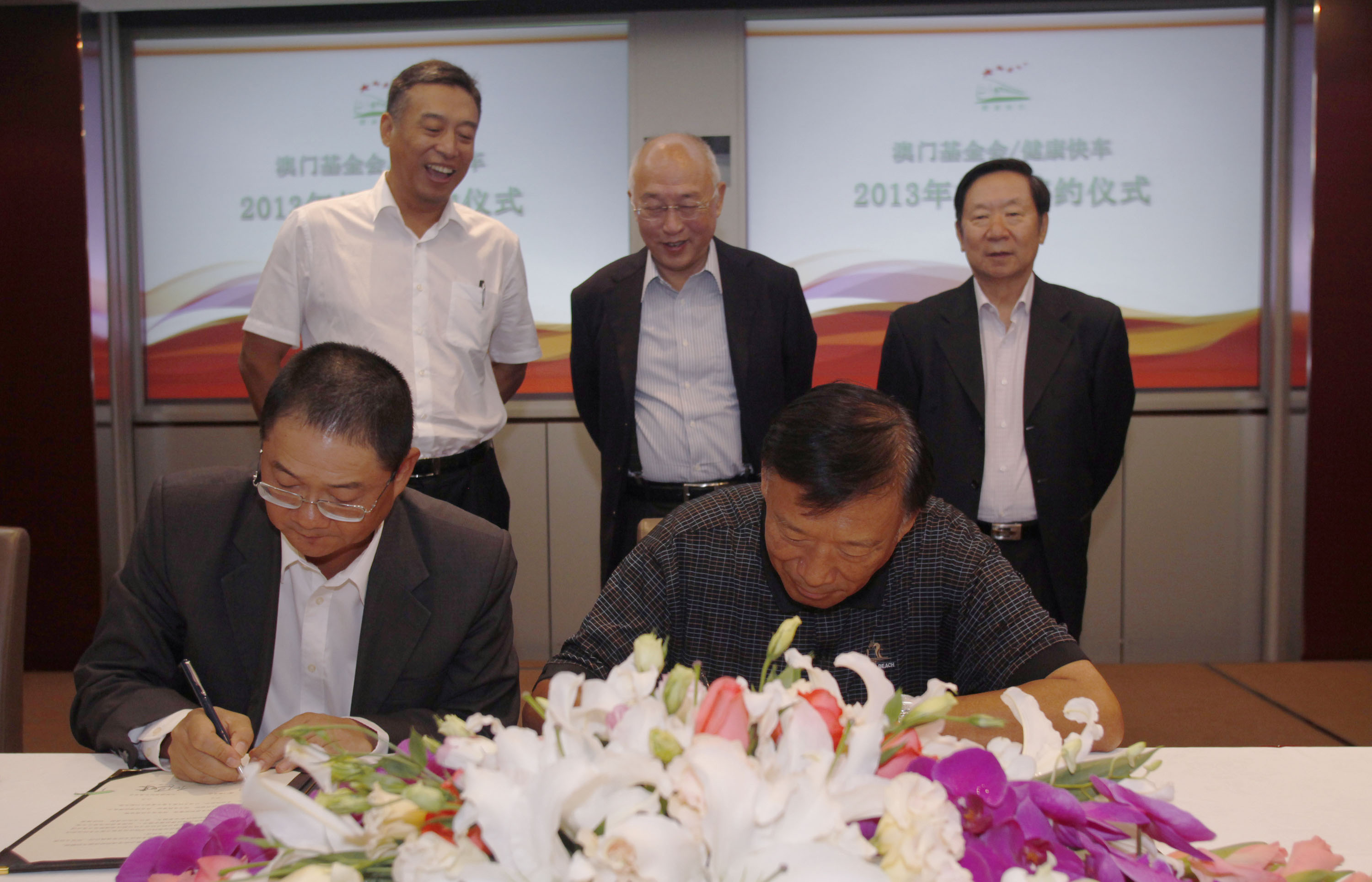 合作協議簽署儀式於2013年9月18日上午在北京舉行,由澳門基金會行政委員會主席吳志良及中華健康快車基金會副理事長、國家旅遊局原局長何光暐代表簽署,出席的還包括中華健康快車基金會監事長、財政部原部長項懷誠,中華健康快車基金會副理事長、國務院港澳事務辦公室原常務副主任陳佐洱,衛生計生委國際交流中心主任高衛中等。
