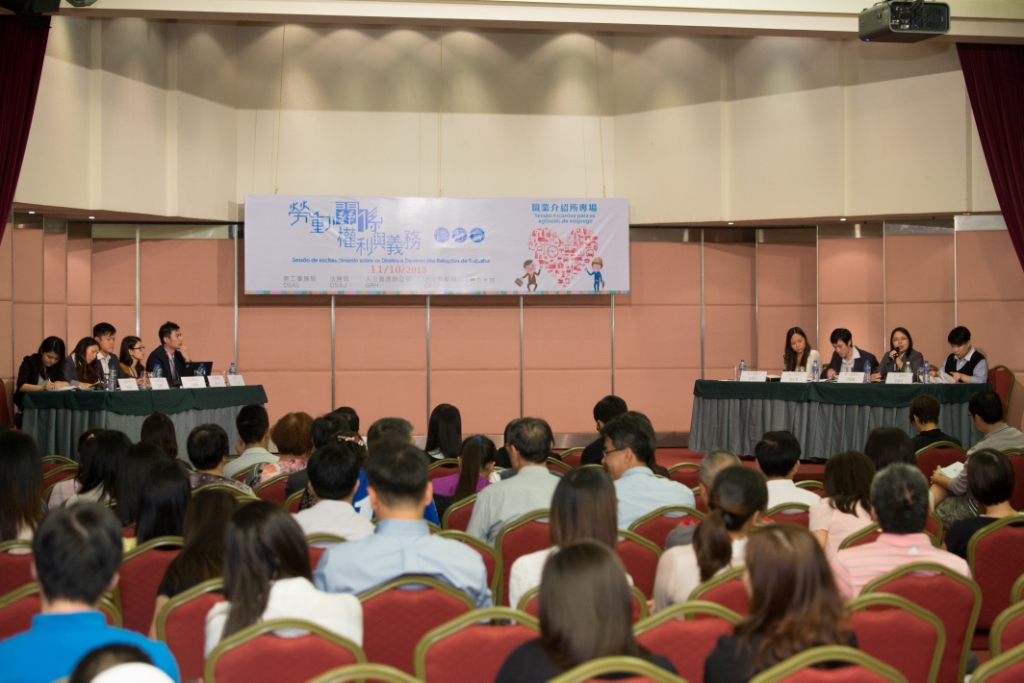 為加深從事職業介紹行業人士認識勞動範疇的法律法規和提高守法意識,勞工事務局、法務局、人力資源辦公室及治安警察局合辦「勞動關係權利與義務講解會-職業介紹所專場」,講解會已於10月11日下午3時至6時假世貿中心五樓蓮花廳舉行,有近200名業界人士及市民參加。