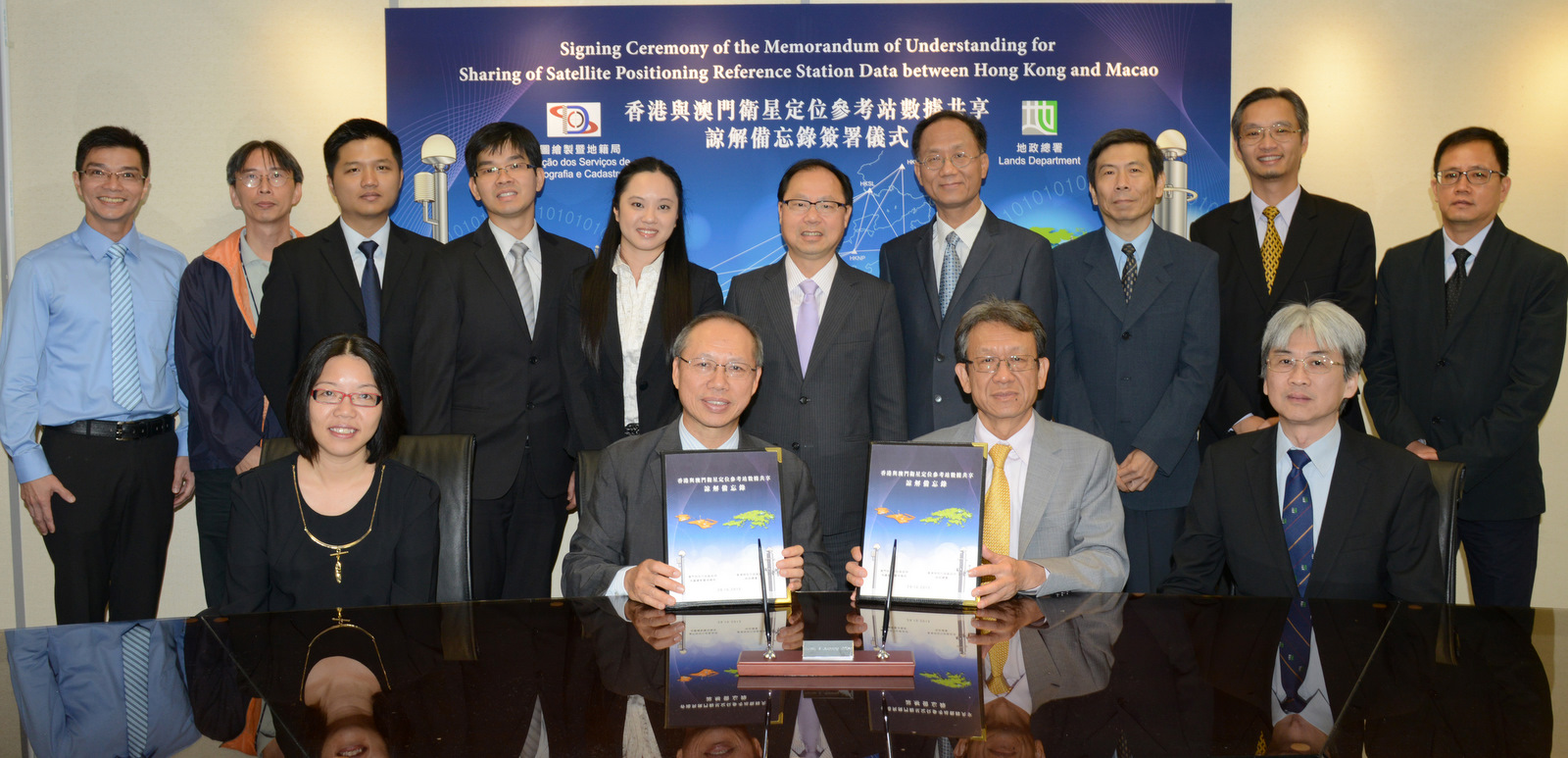 地圖繪製暨地籍局局長上月底率代表團前赴香港出席「香港與澳門衛星定位參考站數據共享項目」簽署儀式,由地籍局陳漢平局長與香港地政總署邵偉青副署長(測繪事務)共同簽署合作安排諒解備忘錄,標誌著港澳兩地衛星定位參考站數據共享服務正式開通,隨即向網上登記用戶免費提供兩地衛星定位參考站的GPS+GLONASS衛星觀測數據。