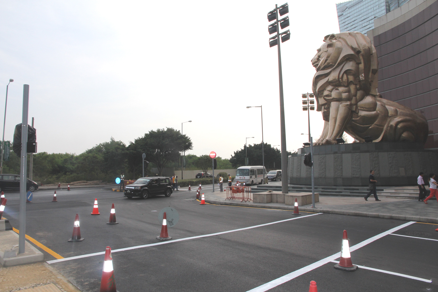 配合特區政府完善新口岸及外港新填海區的道路交通環境,並疏導宋玉生廣場一帶在上、下班時段經常出現交通擠塞的情況,交通事務局於上月7日開展孫逸仙大馬路與城市日大馬路交界開闢新路口的整治工程。有關工程主要須移走孫逸仙大馬路與城市日大馬路交界的中央分隔石礐、新增安全島及安全島路緣,藉以提供車輛轉入缺口,同時在相關路口增設交通燈號,理順人車通行秩序。路口開闢後,車輛便可從城市日大馬路經新開闢的路口右轉入孫逸仙大馬路,直接前往西灣大橋及媽閣方向,避免繞經宋玉生廣場,從而分流區內車流,減輕相關路段之交通壓力。