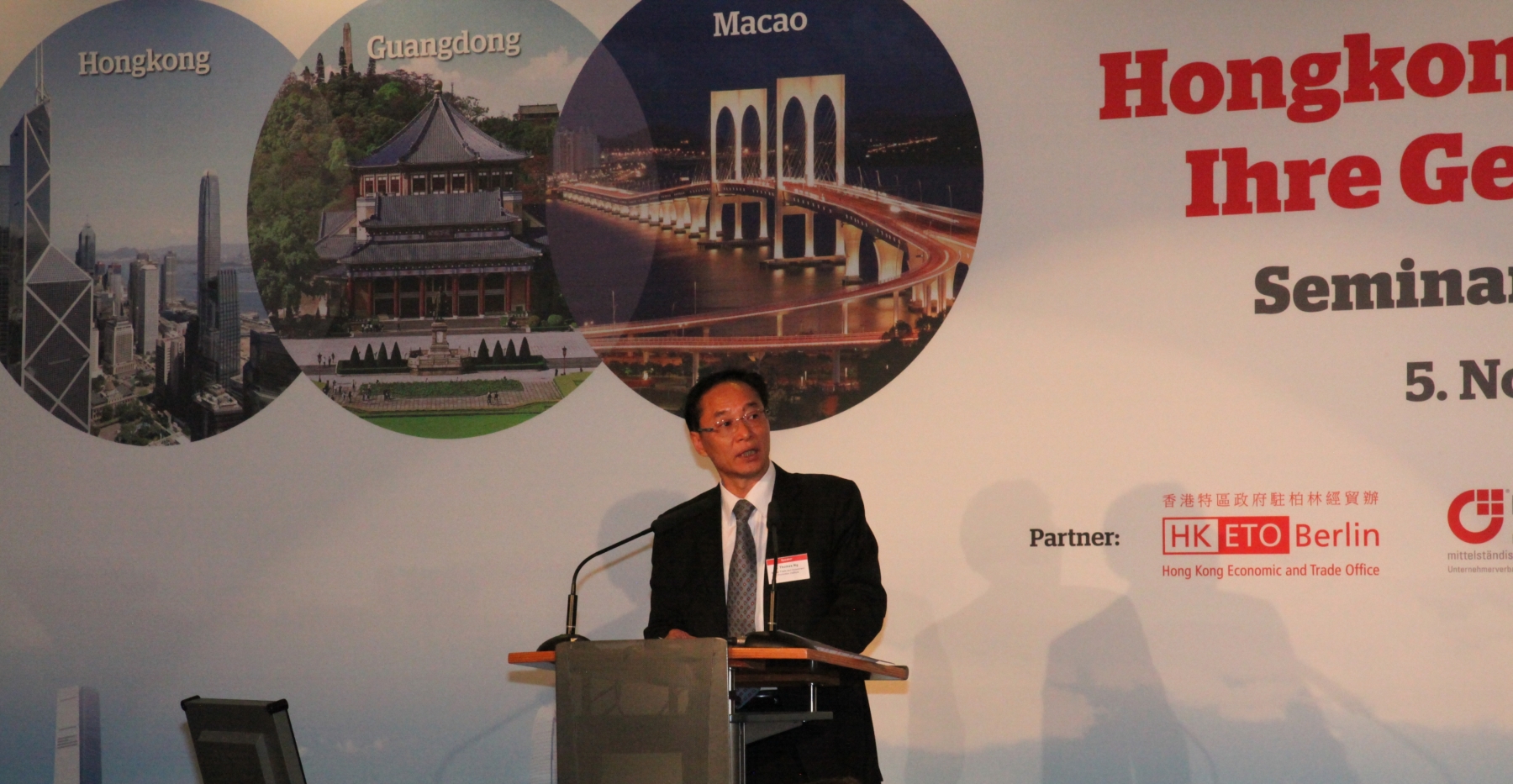 是次德國站推介會是繼2012年由粵、港、澳三地政府經貿部門於韓國共同主辦推介會後,再次在海外聯合推介三地投資環境及最新經濟發展。會上,貿促局投資者服務廳高級經理吳旭輝發言指出,近年,德國與澳門兩地在商貿、旅遊及會展方面合作緊密, 2013年首3季兩地貿易額達1.8億美元,同比上升12.5%。近年,澳門與德國兩地經貿活動不斷深化,貿促局曾多次參與及組織代表團到德國考察當地會展業發展,同時亦有德國的會展企業進駐澳門。