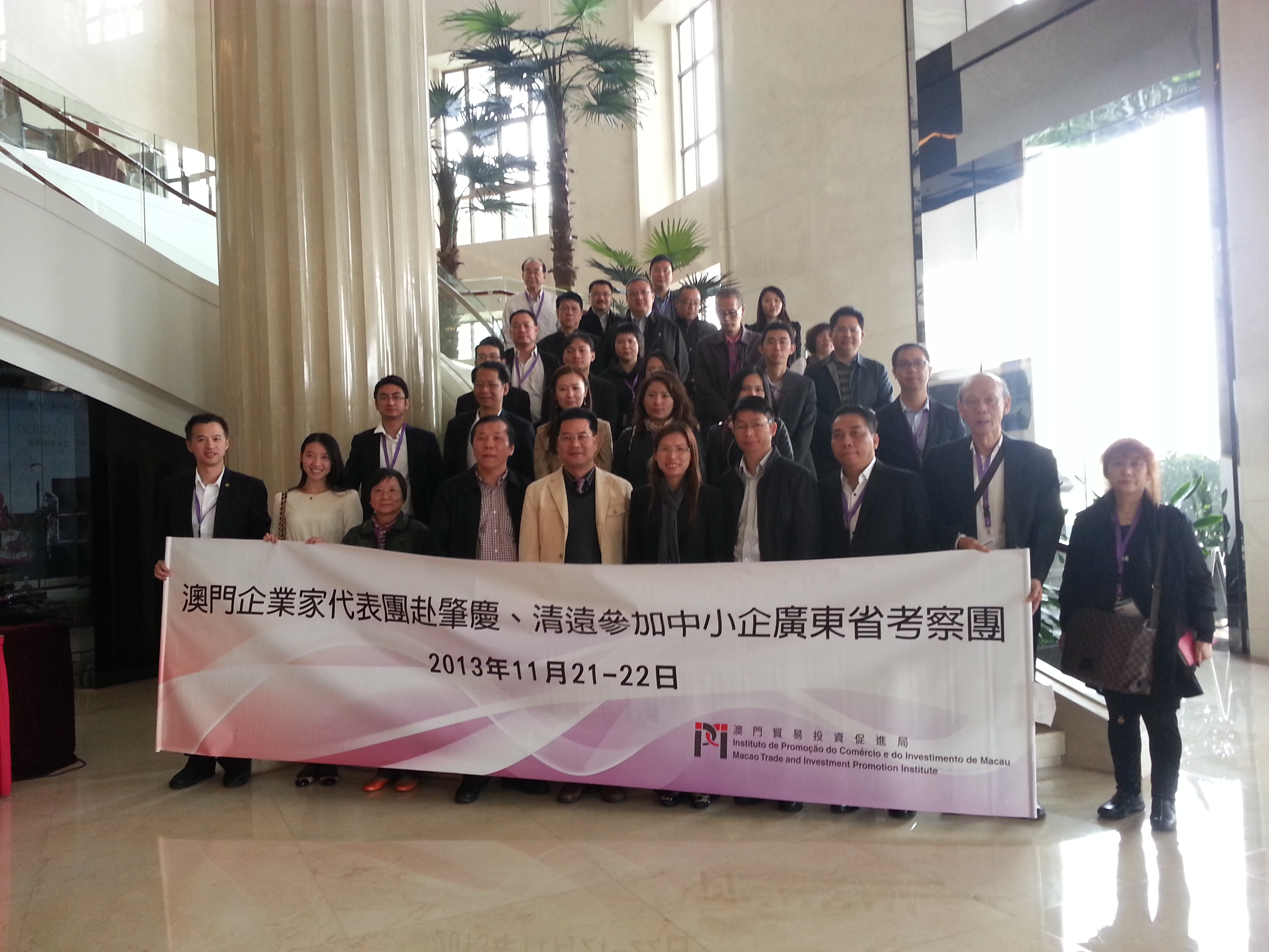 為推動粵澳合作,使本澳更多中小企業瞭解中國內地市場,從而開拓更廣闊之商機,澳門貿易投資促進局與廣東省對外貿易經濟合作廳於11月21日及22日合辦“澳門中小企廣東省考察團(肇慶、清遠)”。是次代表團共三十人,成員來自多個行業之商會及企業,包括銀行、建築、餐飲、貿易、珠寶金飾、攝影、手信業等。