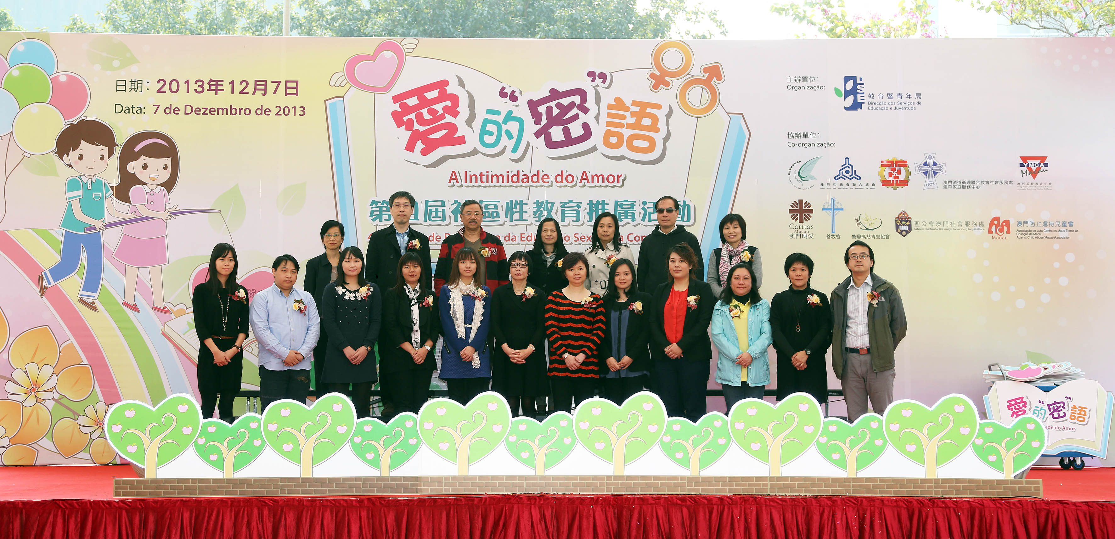 “愛的‘密’語──第四屆社區性教育推廣活動”於十二月七日下午在友誼廣場舉行了啟動日,為是次為期三個月的性教育推廣活動揭開了序幕。教青局副局長郭小麗、教育廳廳長梁慧琪及各個協辦單位代表主持啟動儀式,寓意政府和社會服務團體齊心合力,把“健康親密關係”的訊息推廣至社區,共同培育下一代茁壯成長。活動現場還有一系列的精彩節目,包括歌手演唱、魔術表演、管樂表演、流行舞、互動遊戲、有獎問答及攤位遊戲等,並舉行“學校性教育支援計劃”嘉許儀式。教青局向參與計劃的學校頒發嘉許狀,感謝學校的支持,肯定學校對性教育工作所做的努力。獲嘉許的部分學校代表更即場分享參與計劃的心得,認為有關計劃對學校在性教育規劃、學生學習及教學人員的專業成長等方面均有所裨益。