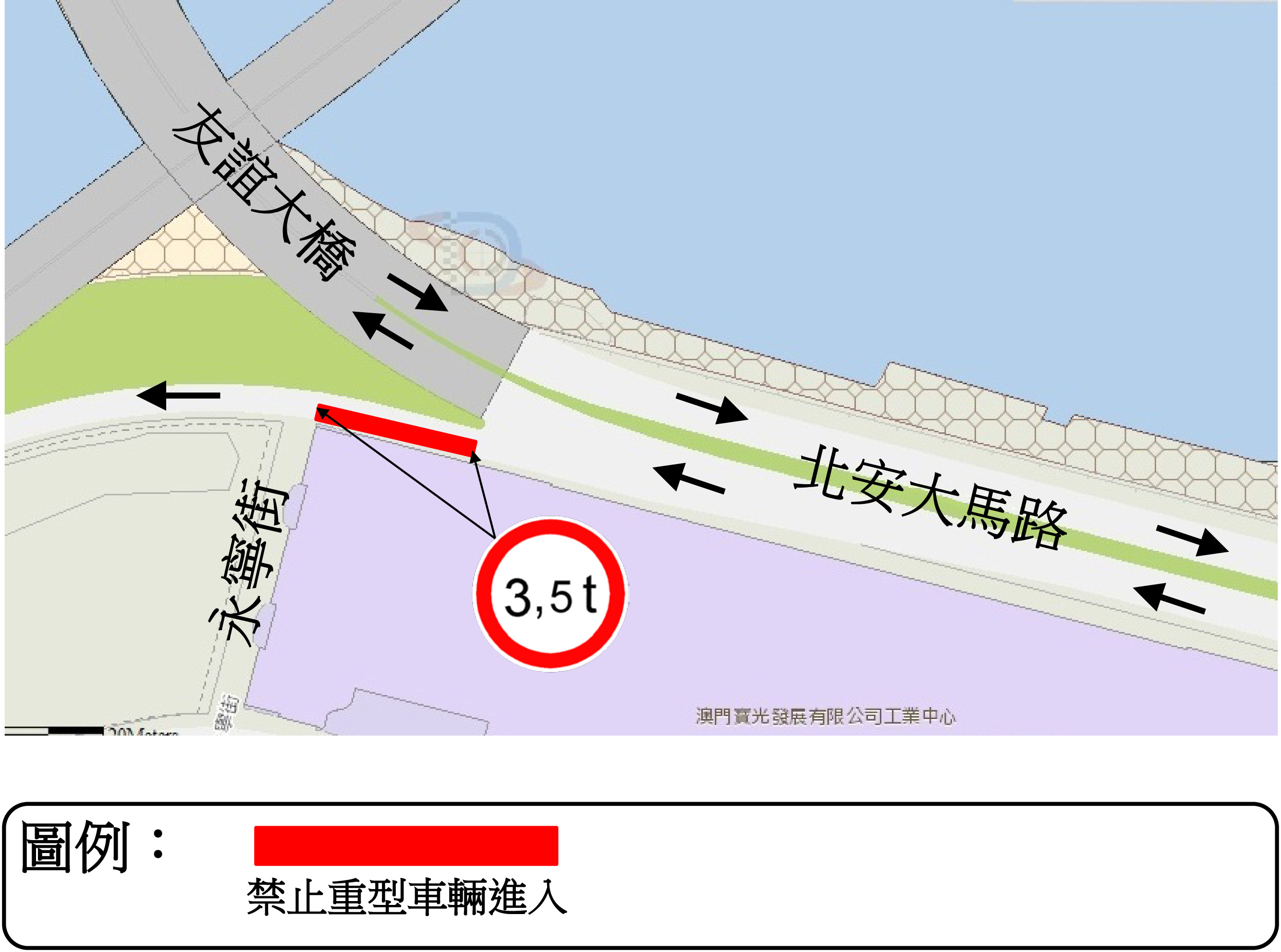 配合電力公司進行路面重鋪工程,北安大馬路近高勵雅馬路的路段將於本月13日(周五)晚上7時至11時實施有限度通車,期間,並禁止重型車輛進入該路段。交通事務局呼籲駕駛者留意有關改動,並遵守路上所設置的臨時交通標誌。如欲了解詳情,可登入交通事務局網頁www.dsat.gov.mo或致電交通事務專線8866 6363。