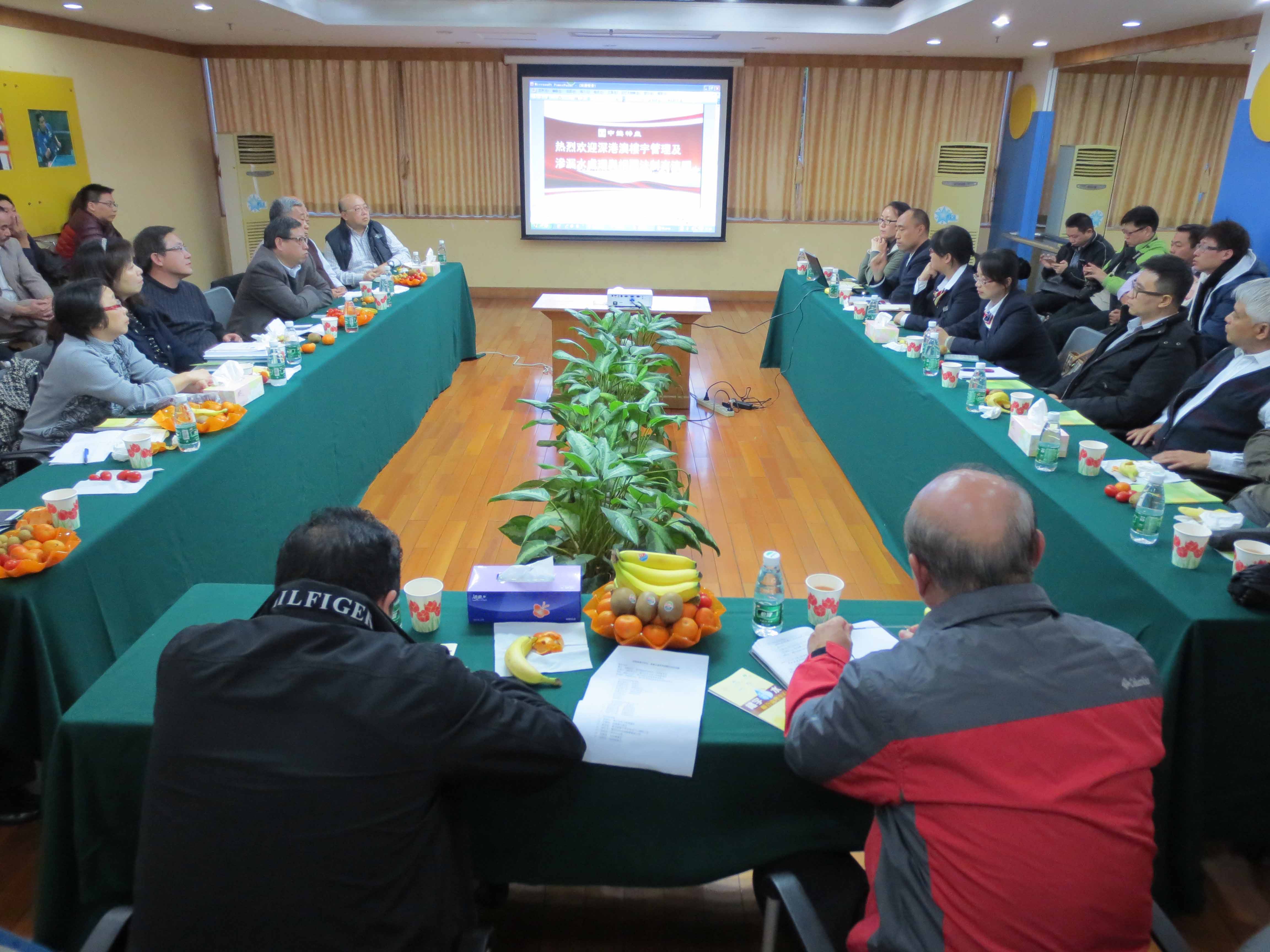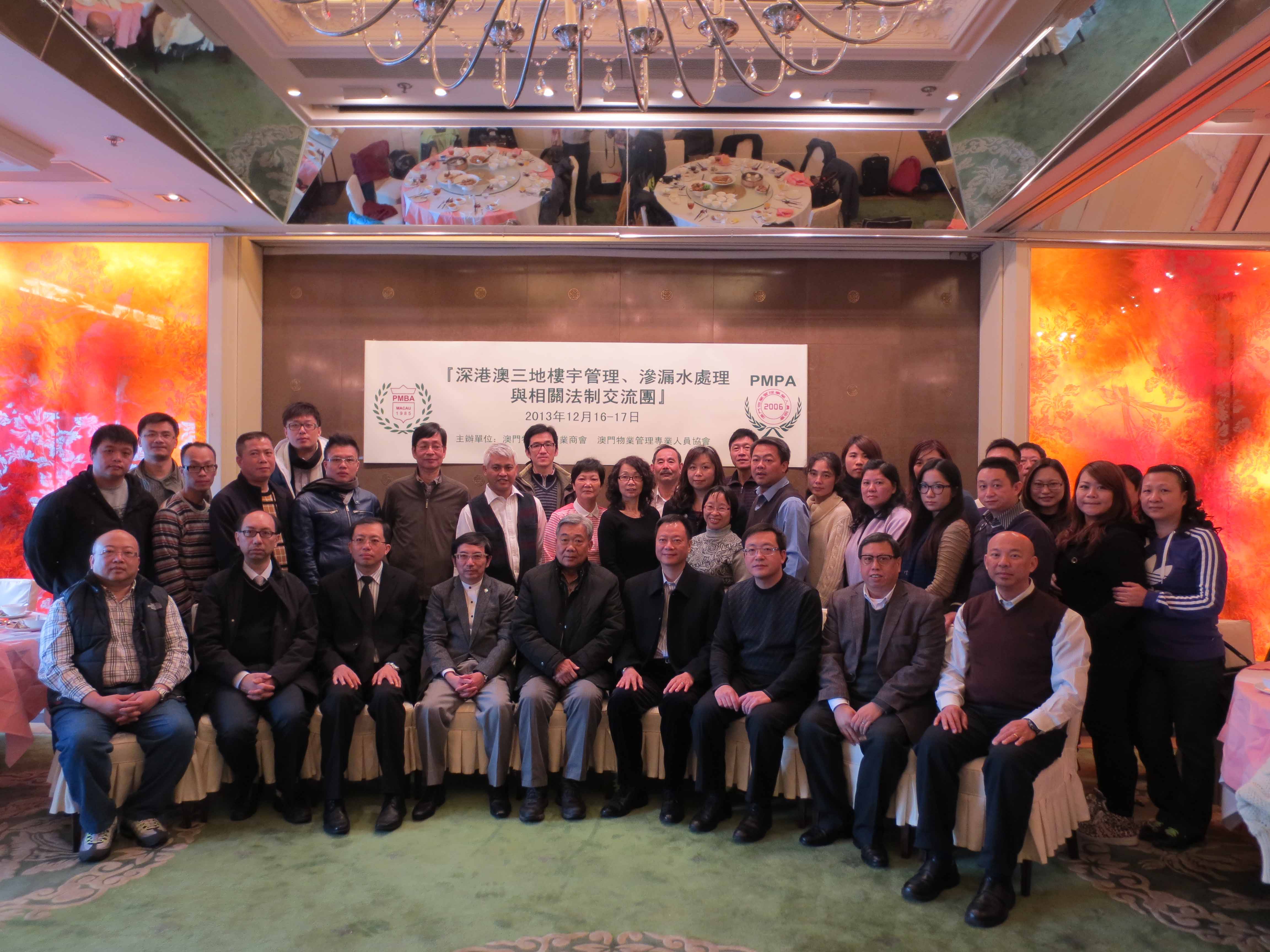 期間,考察團拜訪了深圳市物業管理協會,並與深圳市住房和建設局物業監管處劉政處長、深圳市物業管理協會李加林會長、呂維副秘書長進行工作交流,同日下午,參觀“中海華庭”小區樓宇管理服務,以及就深澳兩地樓宇管理,以及滲漏水處理與相關法制進行交流和分享,房屋局樓宇管理廳楊錦華廳長指出,透過深圳市物業專項維修資金管理中心的人員講解,讓考察團瞭解深圳市物業專項維修資金的運作,即使深澳兩地在樓宇維修、物業專項維修資金及政府管理角色上存有差異,樓宇管理和大廈的維修保養工作,仍有賴業主的主動參與,以及與物業管理公司的共同配合和跟進。在滲漏水處理方面,深圳市防水專業委員會瞿培華主任指出,外牆材料及接駁管道技術起關鍵作用,只有做好施工過程,從源頭減少滲漏水問題;而法制方面,深圳市有法例授權當地物管公司監管裝修與新建樓宇交接,減少滲漏源頭的形成,從而保障業戶。