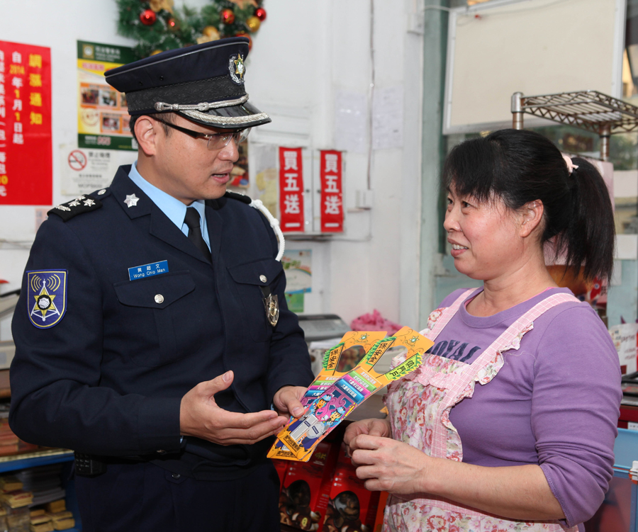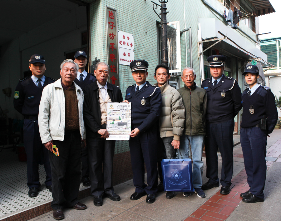 根據以往經驗,緊接新年前以及長假期出現的盜竊情況會較平時為嚴重,同時盜竊發生的原因往往由於自身防範薄弱;另外,市民駕車出行的情況亦會增多,交通安全尤須關注。為此治安警察局各單位連日來到澳門及離島各區住宅群、旅遊區等接觸管理員、店員、市民,派發 “慎門戶 保安全”、“提防小手”、 “交通安全”等宣傳單張,藉此提升意識,做好防範。