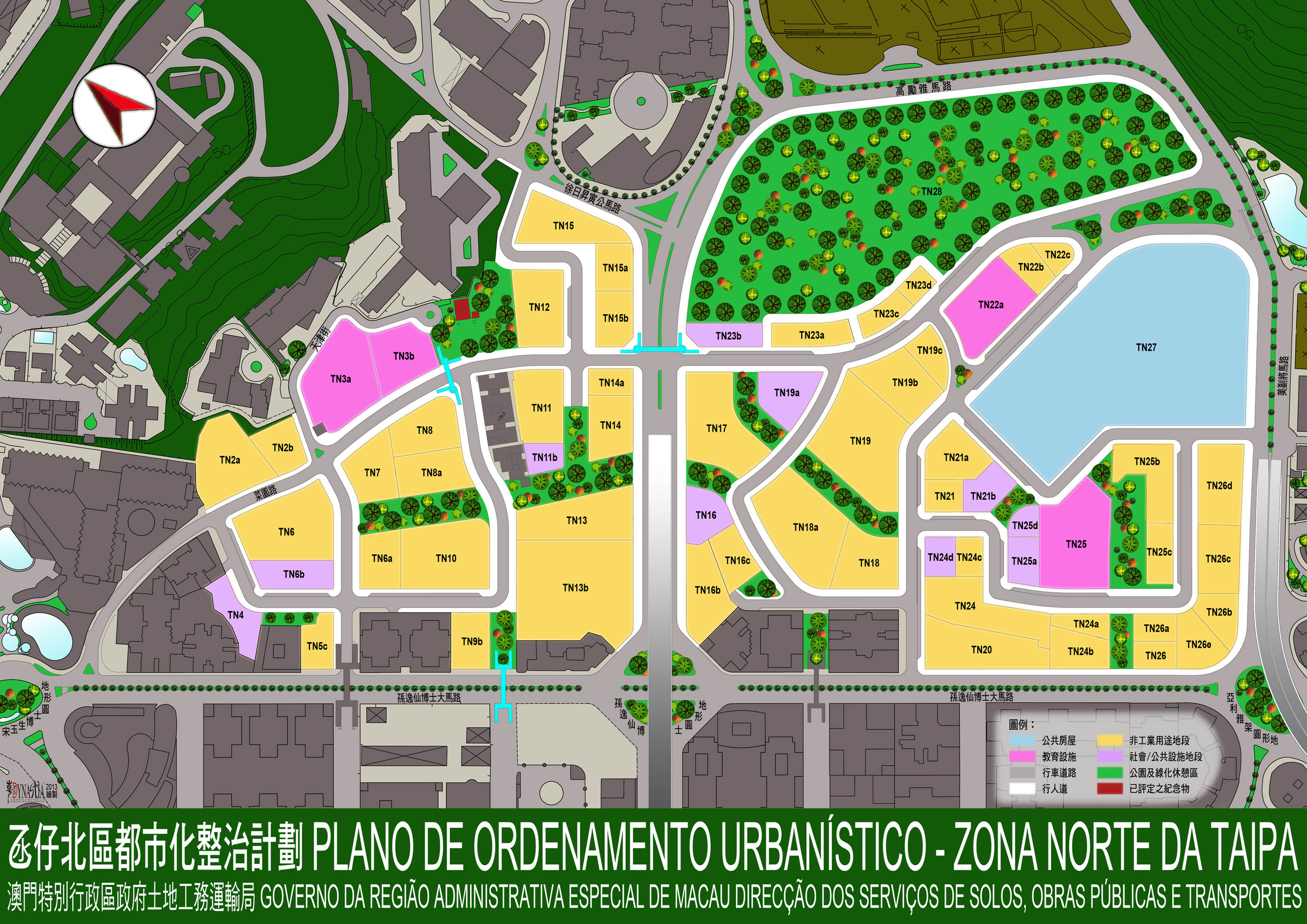 為推動氹仔北區(TN地段)的都市化發展,促進市區土地合理開發使用,政府公佈“氹仔北區都市化整治計劃修訂”,重新規劃面積達223,038平方米的土地,以集約利用土地資源為原則,採用社區內路和自然集聚模式進行空間佈置,當中包括公園廣場、行車道路、非工業用地、公共房屋用地及社會設施用地等,預計可容納3萬6千多人口。有關規劃務求做到尊重原有村落肌理,保育歷史文物,保留部分原有自然資源,將氹仔北區發展成一個配套完善的新型綠色居住社區,總體優化氹仔市區的生活環境。