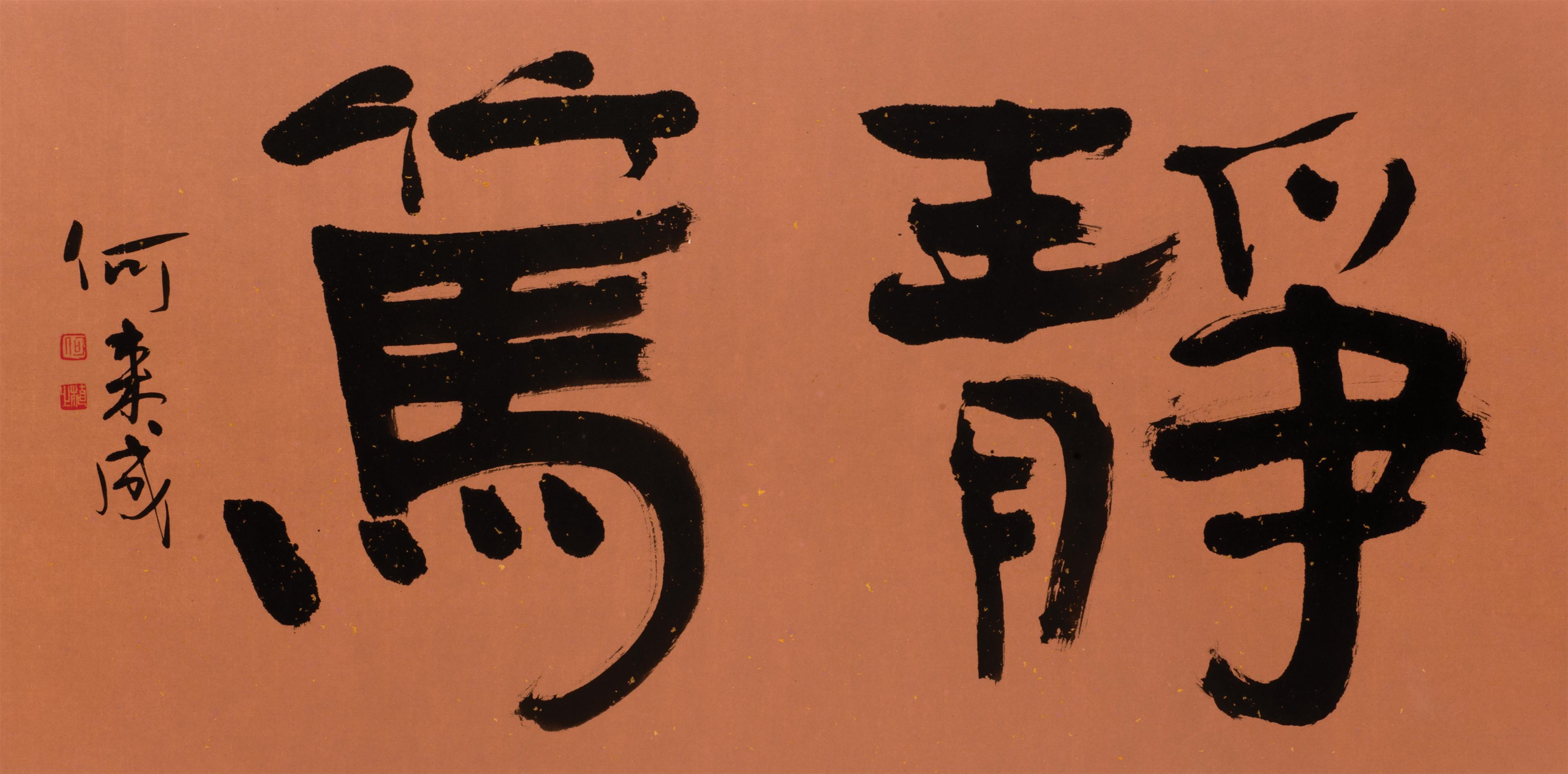 何來成先生長期從事書法創作,積極推廣中國書法,作品經常在海內外交流展出,並被主辦機構收藏。他認為書法作為一種以筆墨線條和結構来抒發人的理想、情感的藝術,必須植根時代,師古納今,這不但是他的親身體味,也是所有追尋藝術的人感悟的道理。