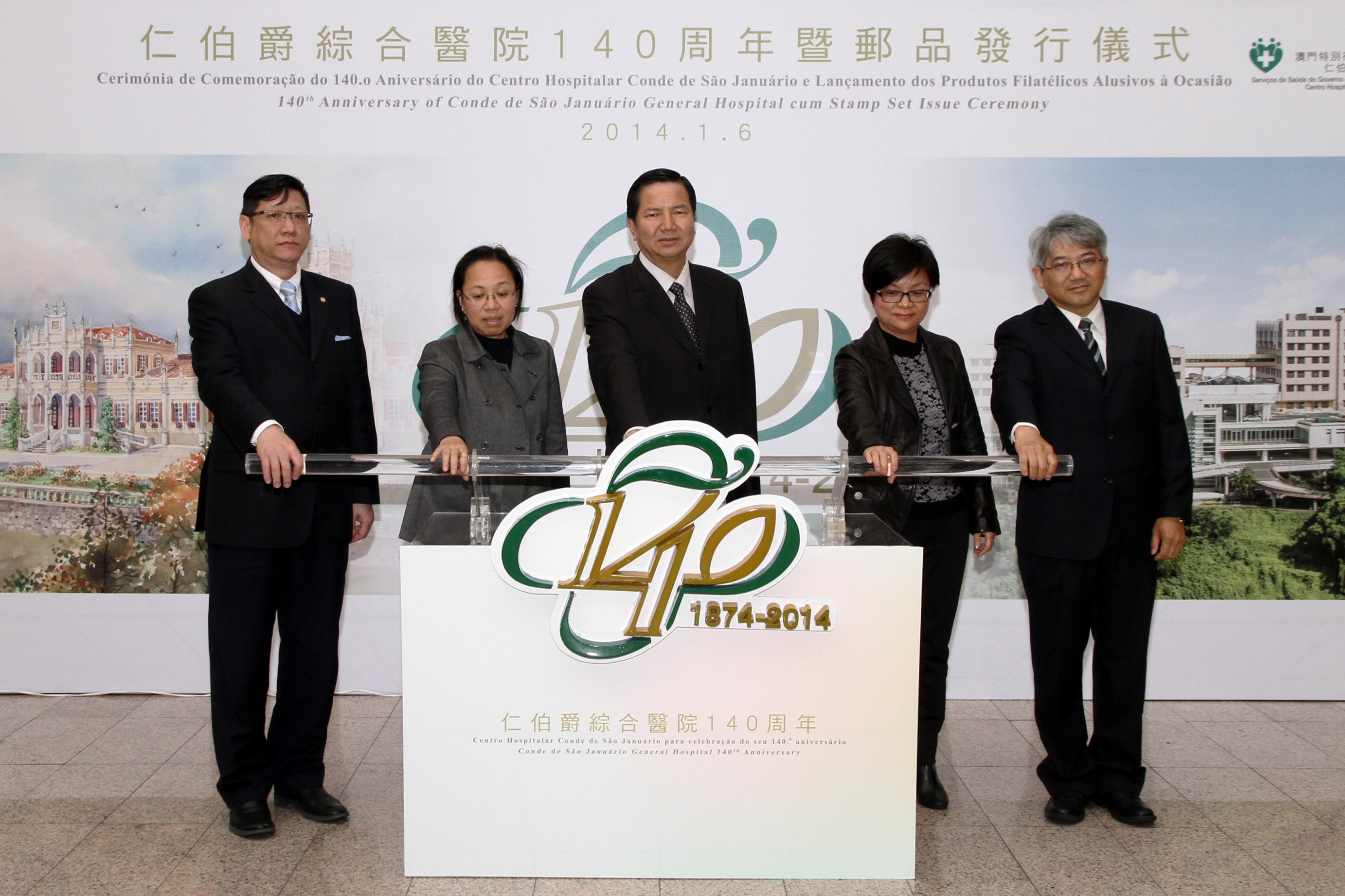 仁伯爵綜合醫院於今日(1月6日)舉行140周年暨郵品發行儀式,亮燈儀式由社會文化司張裕司長、社會文化司司長辦公室梁明慧代主任、衛生局李展潤局長、郵政局劉慧明局長及仁伯爵綜合醫院陳惟蒨院長主持。李展潤局長及劉慧明局長於儀式上,向張裕司長致送仁伯爵綜合醫院140周年郵品。張裕司長亦聽取了仁伯爵綜合醫院近年醫療成果的介紹。