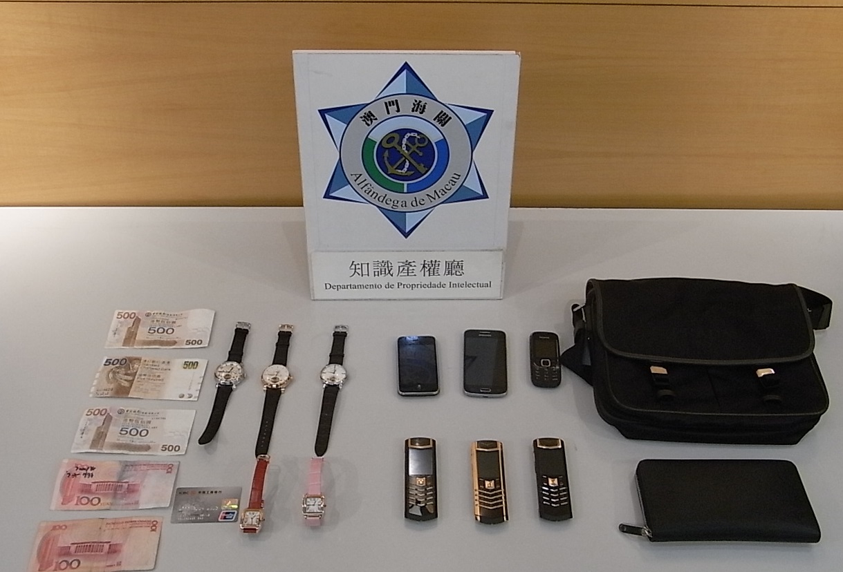 於一月十二日傍晚,海關接獲中區某酒店保安負責人的電話通報,聲稱有兩名男子在其負責看守的酒店商場區域內,向場內人士兜售手錶及手提電話,酒店保安部透過與海關互助合作機制,即時通報海關知識產權廳人員偵查處理。在海關總部調查期間,從該兩名嫌犯身上查獲五隻涉嫌冒牌名貴手錶,品牌包括有:「VACHERON CONSTANTIN」三隻及「CARTIER」兩隻;涉嫌冒牌「VERTU」商標之手提電話三部,另有三部涉嫌用作犯案用途的其他品牌手提電話;聲稱自用的一個假冒「Louis Vuitton」商標銀包及一個「PRADA」商標斜揹袋。上述有關物品外觀雖然仿真度極高,但並沒有任何包裝和出廠票據,產品來歷存疑。海關隨即展開深入調查,並核實該等品牌商標已在澳門特區政府經濟局作出合法註冊登記,經有關品牌權利人代表初步鑑定為假冒貨品。