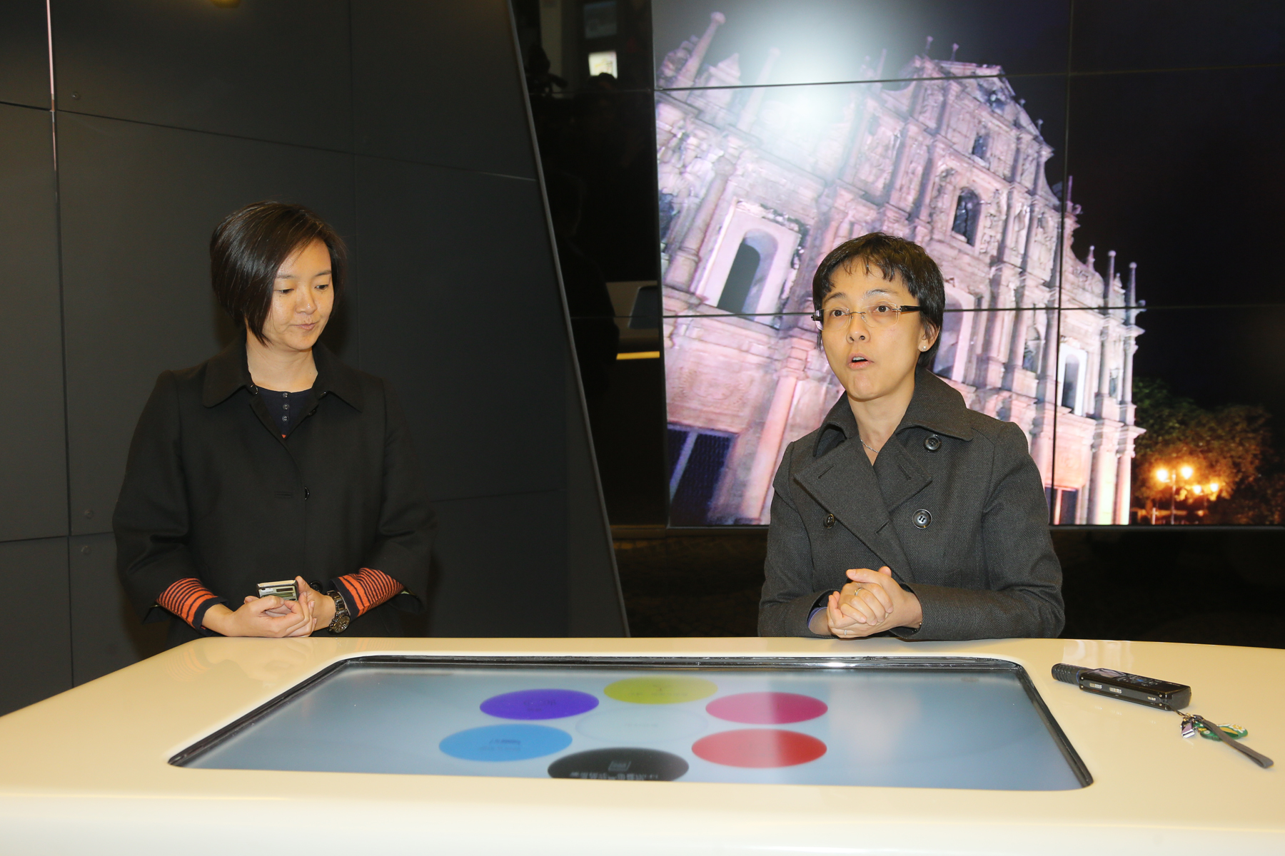 旅遊局局長文綺華及相關主管等今(27日)於外港客運碼頭的旅客詢問處介紹全新的詢問處設備。以開放式設計的詢問處除了有職員接待旅客查詢外,還有多媒體設備供旅客搜尋實用旅遊資訊,無障礙設施及空間為行動不便的旅客提供了更便捷的環境。