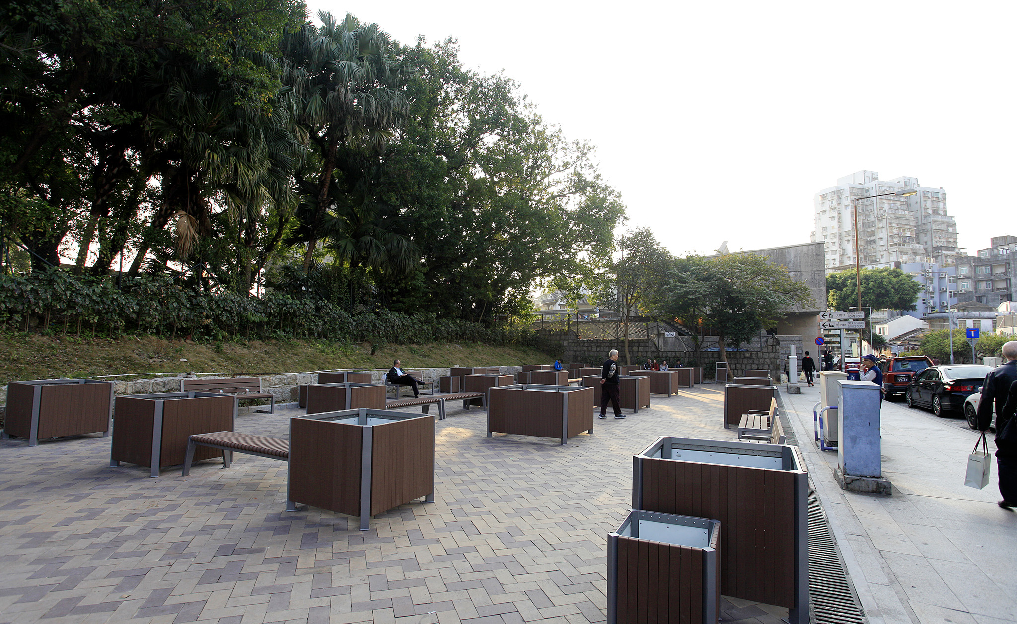 高園街原16至22號路面整治工程已基本完成,繼大型客車臨時上落客區後,臨時休憩區亦將於明日(29日)開放使用。休憩區分上下兩區,提供多張環保木長椅,供旅客休憩、等候及集散用途,有助疏導大三巴牌坊的人潮。另一方面,旅客可經由澳門博物館前地,較安全地步行往返於牌坊及上落客區之間,而旅遊巴經同安街離開,亦可避免前往耶穌會廣場造成人車爭路的場面。設計上考慮到環保需要,置放多個大型及中型盆栽,減少廢氣及噪音影響,兩項設施總體可改善區內交通及環境問題。
